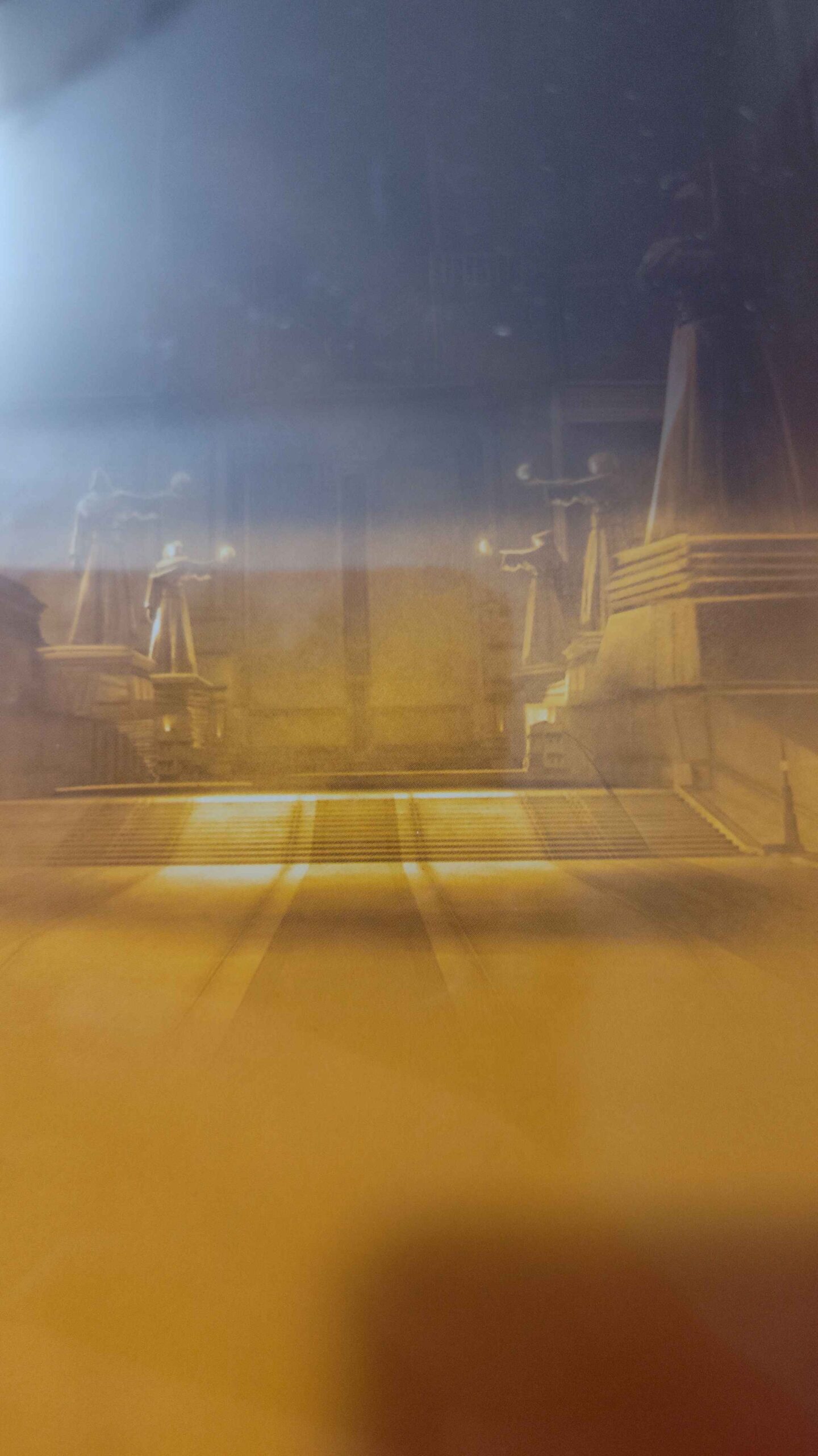 Within the interior of the box, there’s a backdrop of the Jedi Temple’s entrance with the statues that line the walkway.