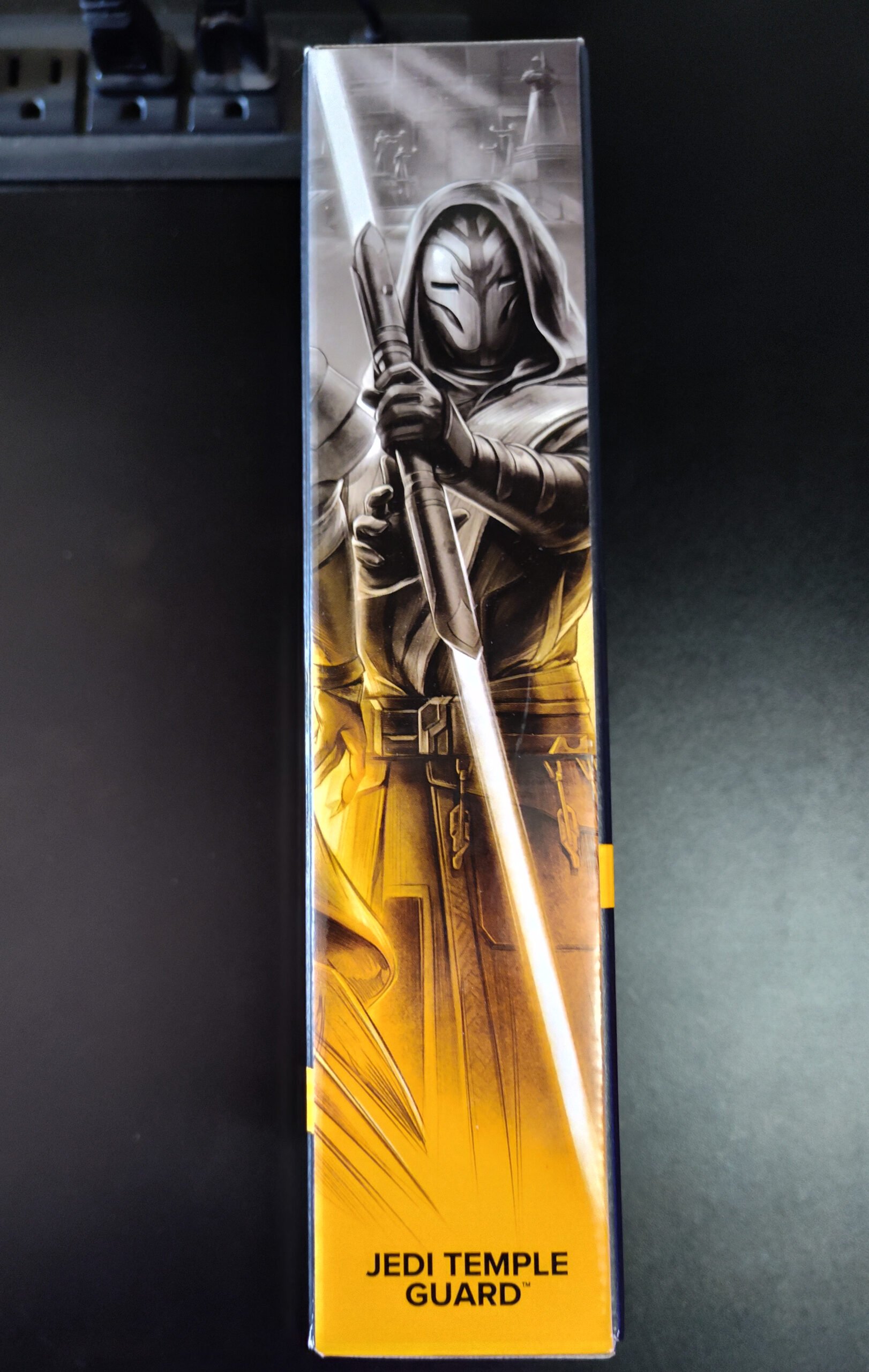 The side and the back of the box display some amazing art of a Jedi Temple Guard. It’s a shame I cannot find the artist online as I’d like to email them for their excellent work.