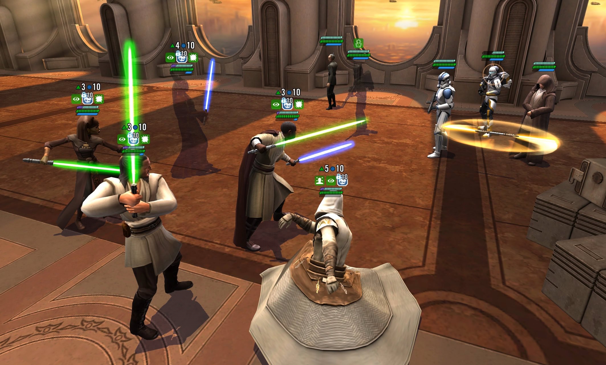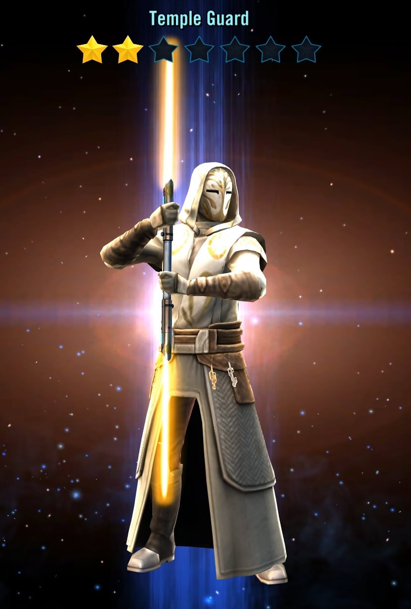 In Galaxy of Heroes, they act as tanks that have high defense and critical avoidance while providing minor healing and area attacks through Force Throwing their pikes. To date, this is the most in-depth Jedi Temple Guard combat we’ve gotten from Star Wars.