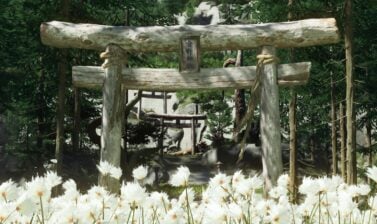 Follow the trails and wind to Iwami Village across the bridge. A settler will flag down Jubei and provide information. Continue following the wind and you’ll find a camp you’ll need to investigate.
