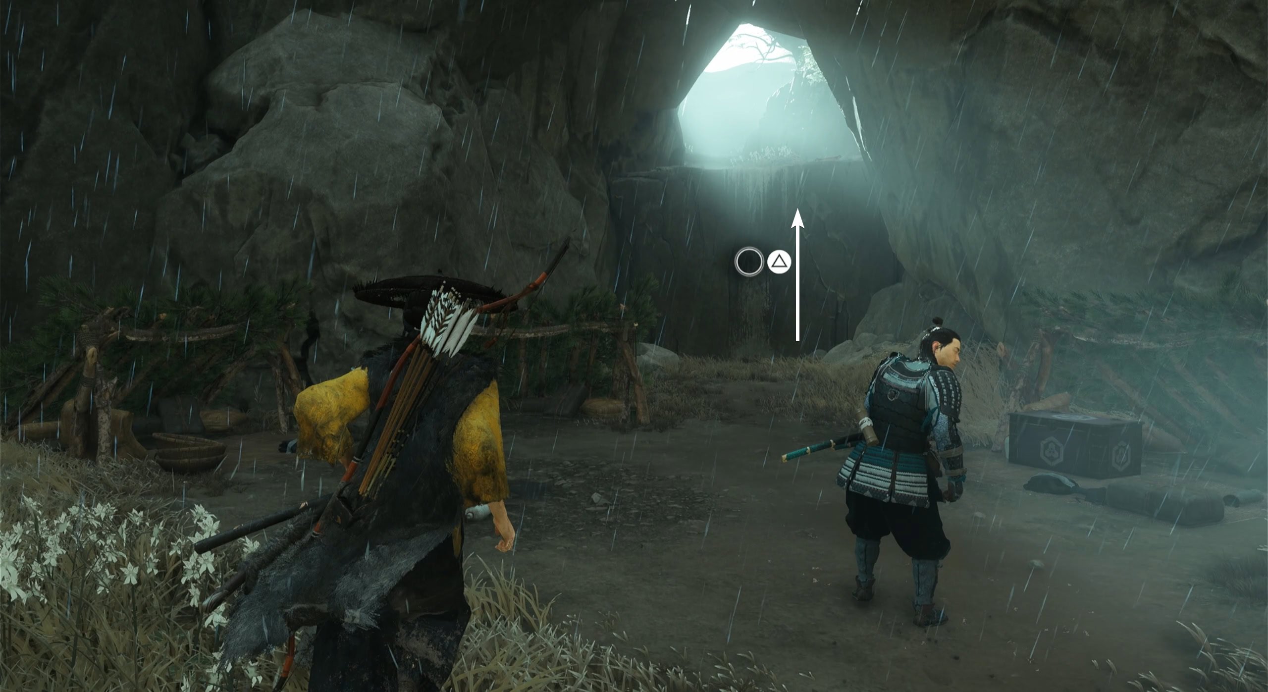 When you reach the other side, Jubei will go to the right. Go to the left and loot the chest inside the cave to get some Oni Raider masks. After that, follow Jubei and continue climbing up the mountain.