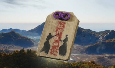 Go inside the Dye House and you’ll find two pillars with more of the Nine Tails symbols on them. In the middle of the room are some wooden lids with the same symbols, though the middle one has the Engage symbol.