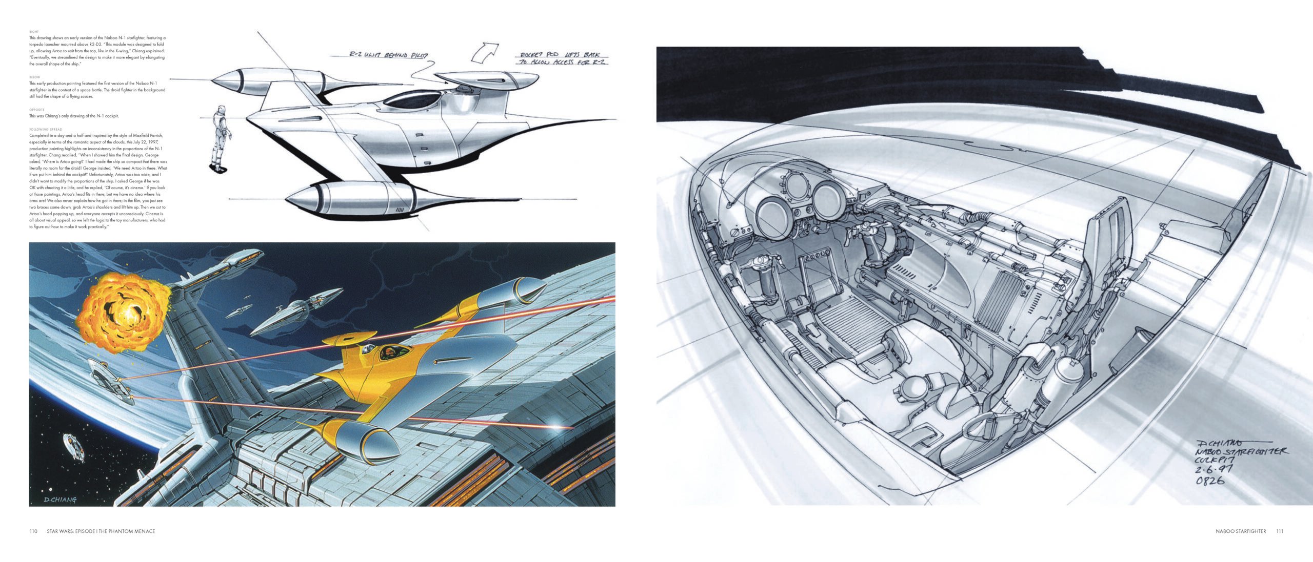 At NYCC, we got a sneak peek at the upcoming two-volume set, which compiles Chiang’s career work, from the beautiful Naboo N-1 Starfighter to the powerful podracers and countless droids, ships, creatures, and characters.