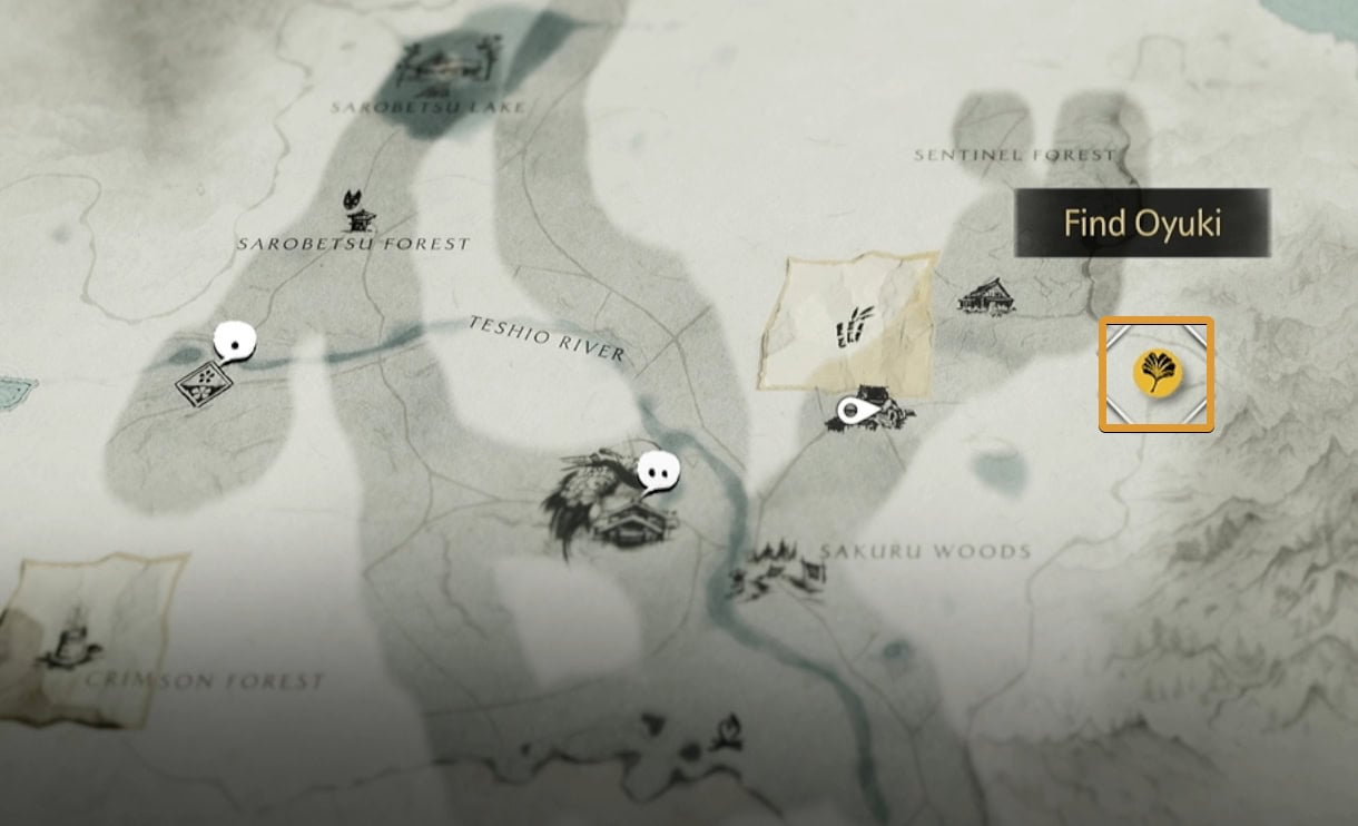 To start this mission, you’ll first need to find the Kitsune’s Wolfsbane Garden. After escaping with the help of Oyuki, you must find her in eastern Teshio Ridge. She’ll be underneath a ginko tree playing her shamisen.