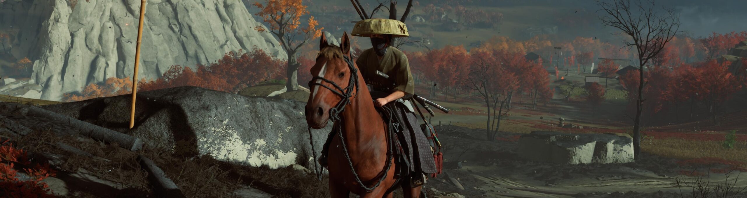 Mercenary Attire is obtainable by all players in Ghost of Yotei and features a simple men’s hakama, black mask, and straw hat, making you look like a run-of-the-mill NPC.