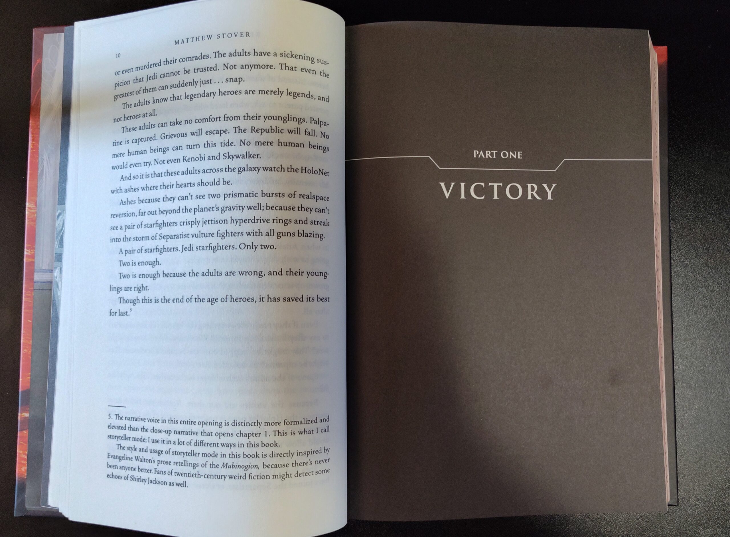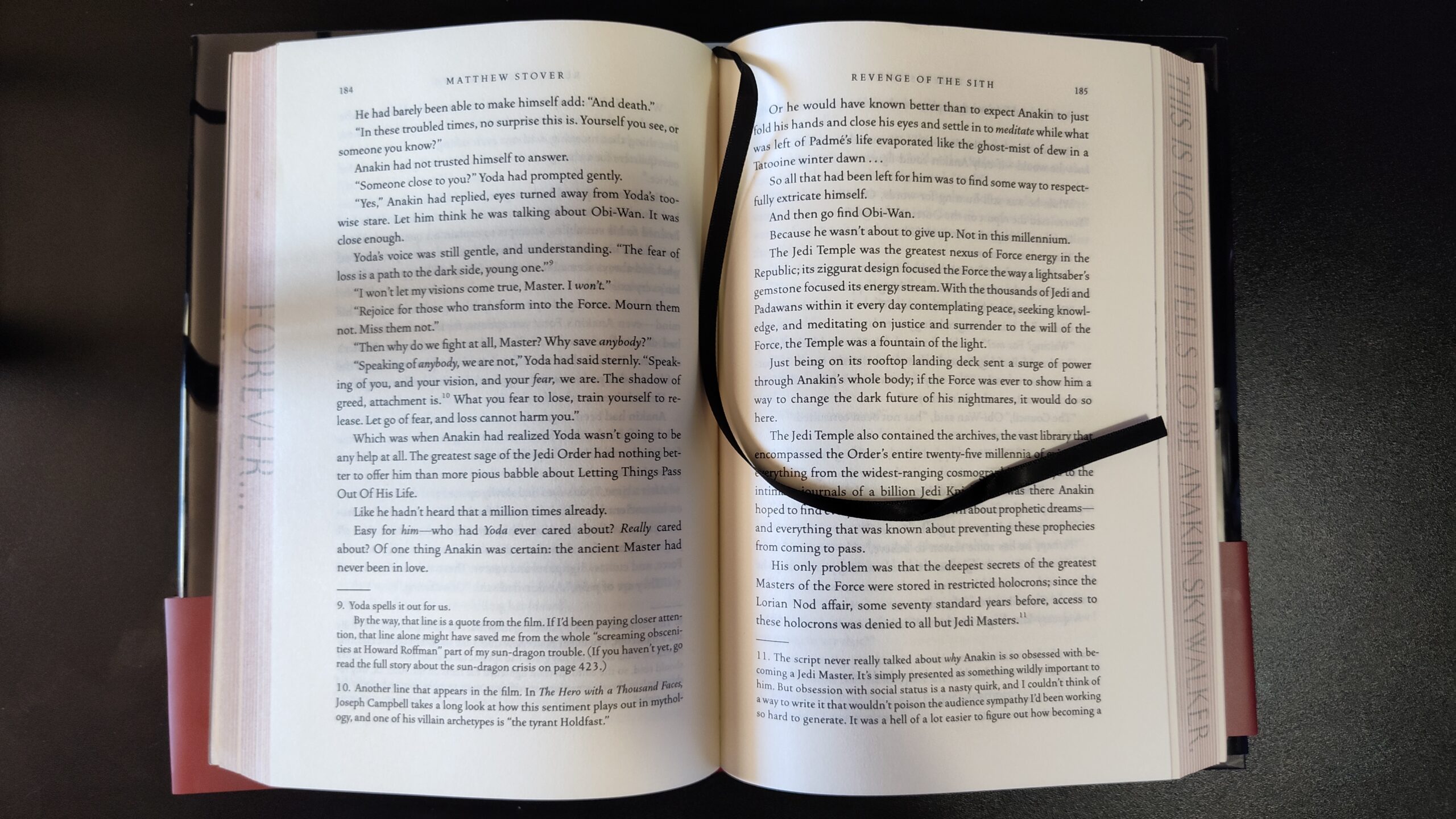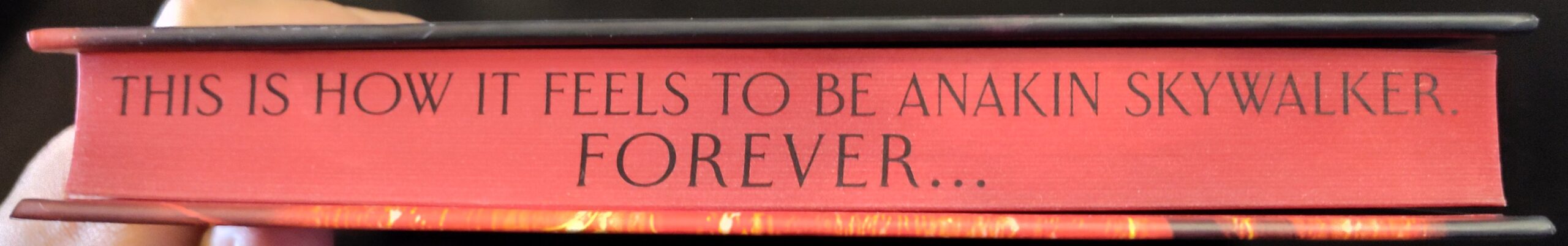 One of my favorite things are the red foil edges with black text of what I’d argue to be the most iconic line of the novel, and the best way to summarize Anakin Skywalker’s existence after Order 66.