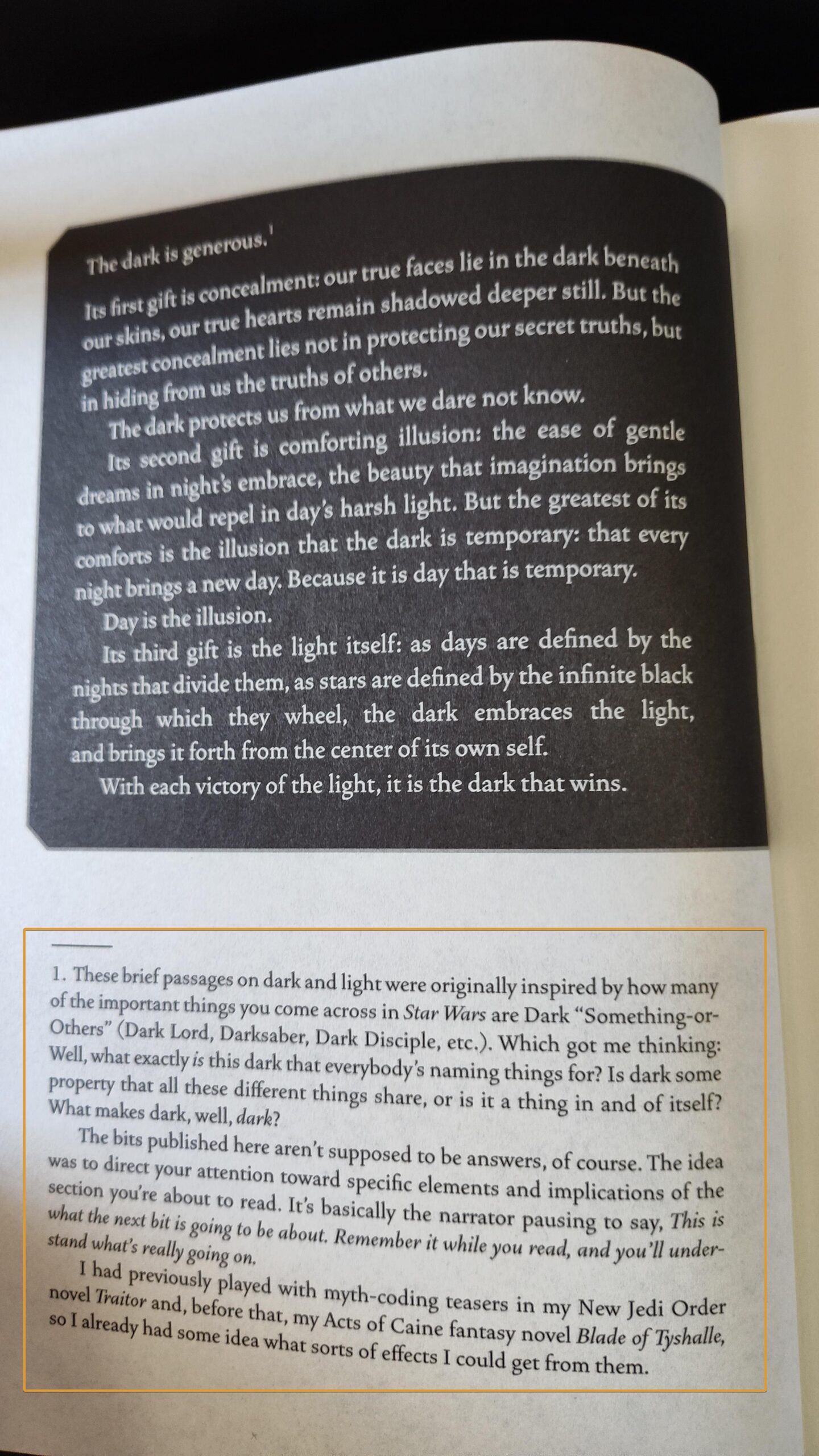 Last but definitely not least are the annotations and new introduction by Matthew Stover. Annotations provide a decent amount of insight into what the author was thinking, the reasoning behind some decisions, and even the sources. Definitely the most valuable things for fans who want to know as much as possible about the book.