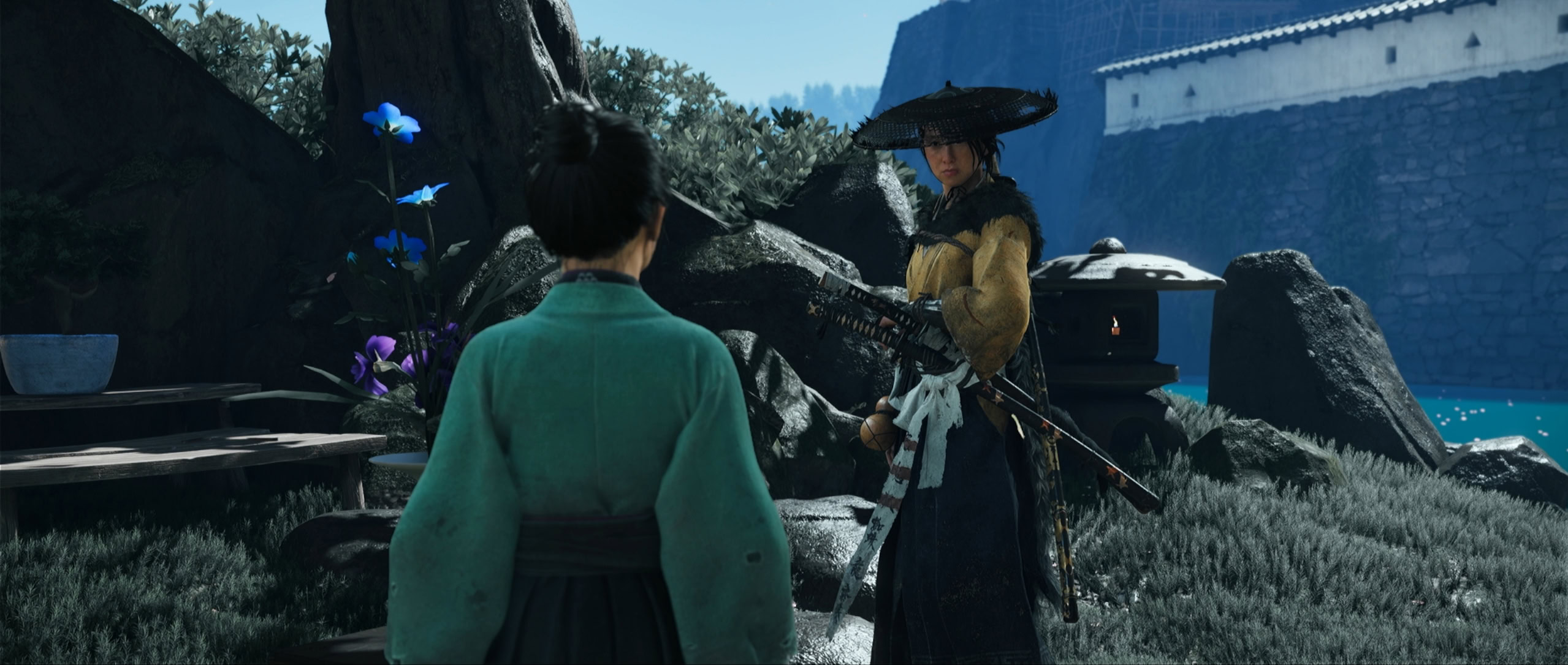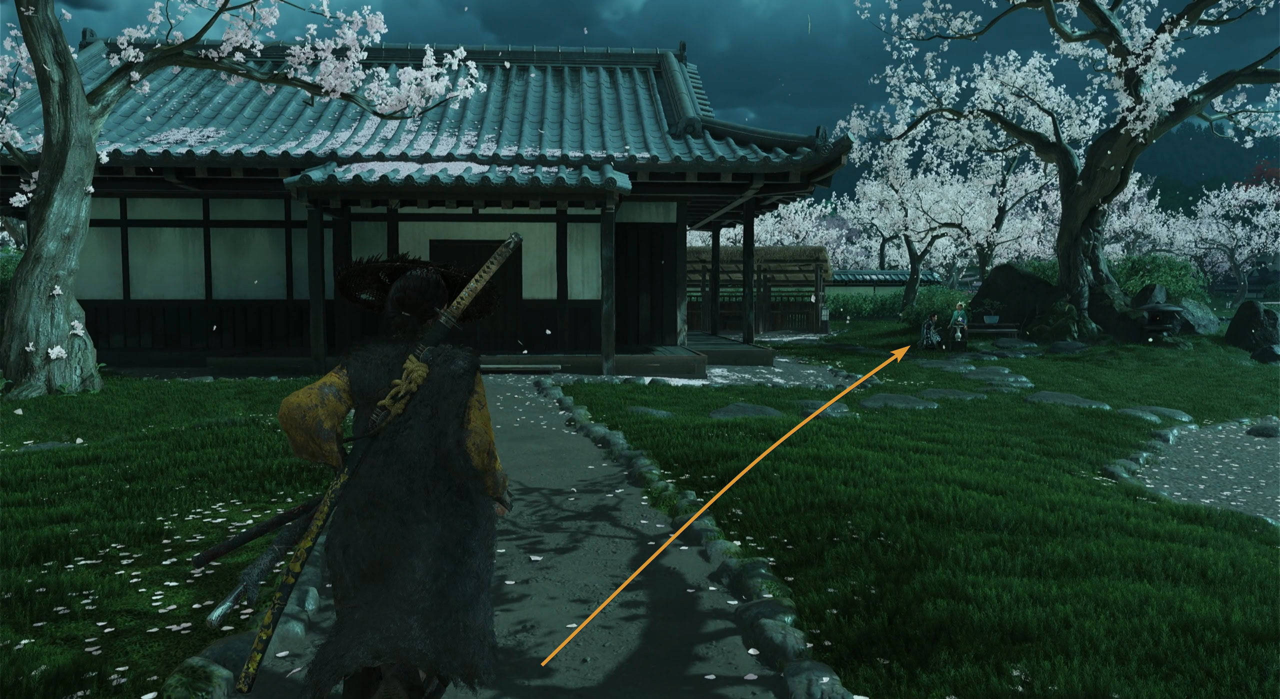 The Matsumae Soldier will lead you to the Matsumae Residences where you can find Jubei. Remember this area as you’ll come back here numerous times. You’ll find Jubei and Kiku working on a flower arrangement.