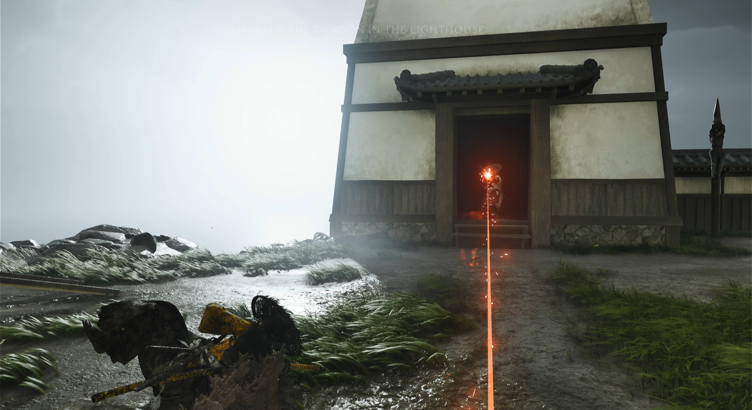 The Dragon is located at a lighthouse at the harbor. Follow Jubei to his men outside the lighthouse to prepare for the attack. Boost Jubei up the ledge to oversee the Dragon’s forces.
