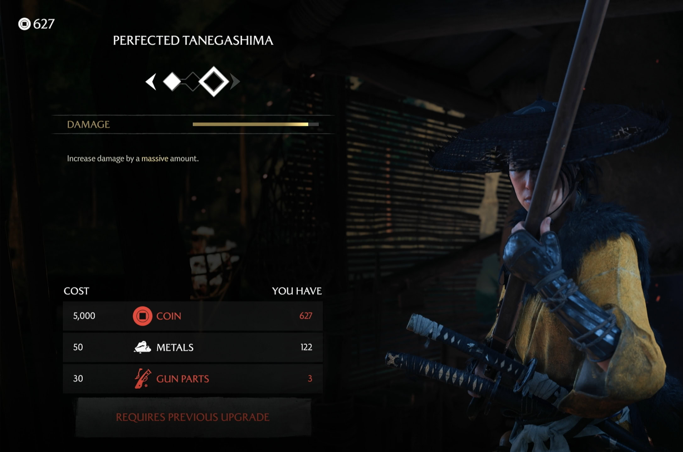 With how useful this weapon is, it’s worth investing into the ammo and damage upgrades. Keep in mind that this is a close range weapon. If you want precision, use the bow or Tanegashima.