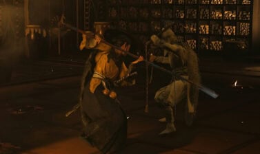 Talk to Murata and give him the bottle of sake in the corner of the room he’s in. Then grab the ramrod from the furnace and use it on him. After cauterizing his wound, you’ll start Guns and Consequences