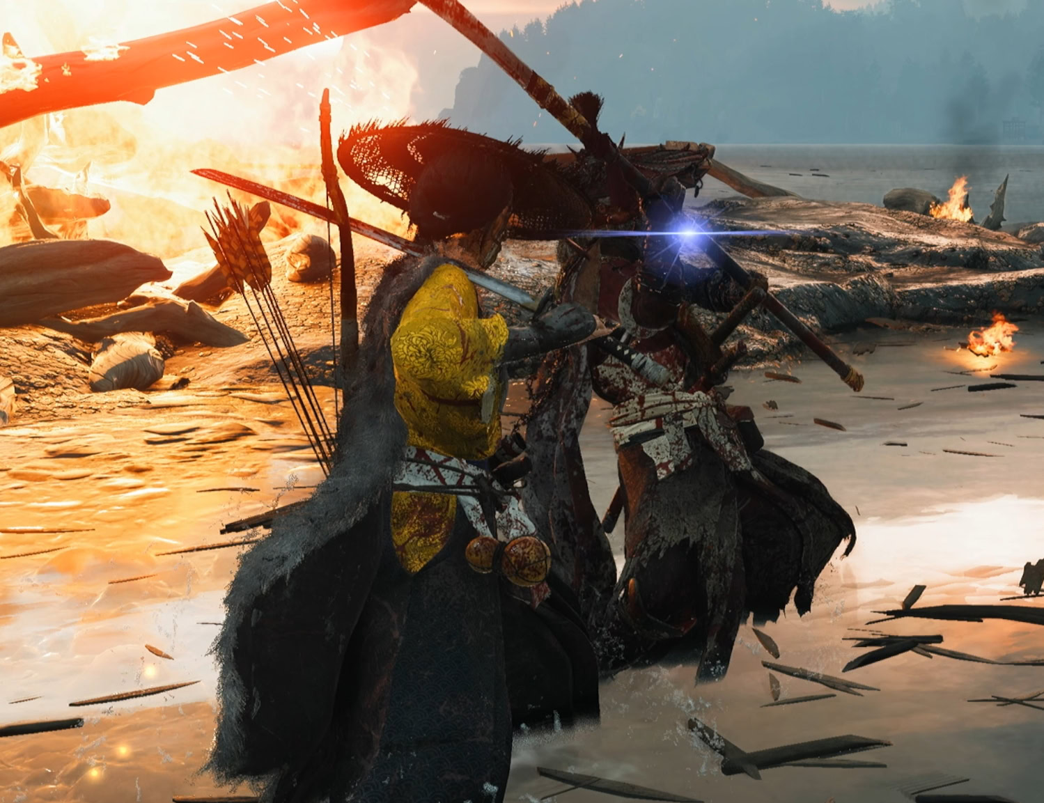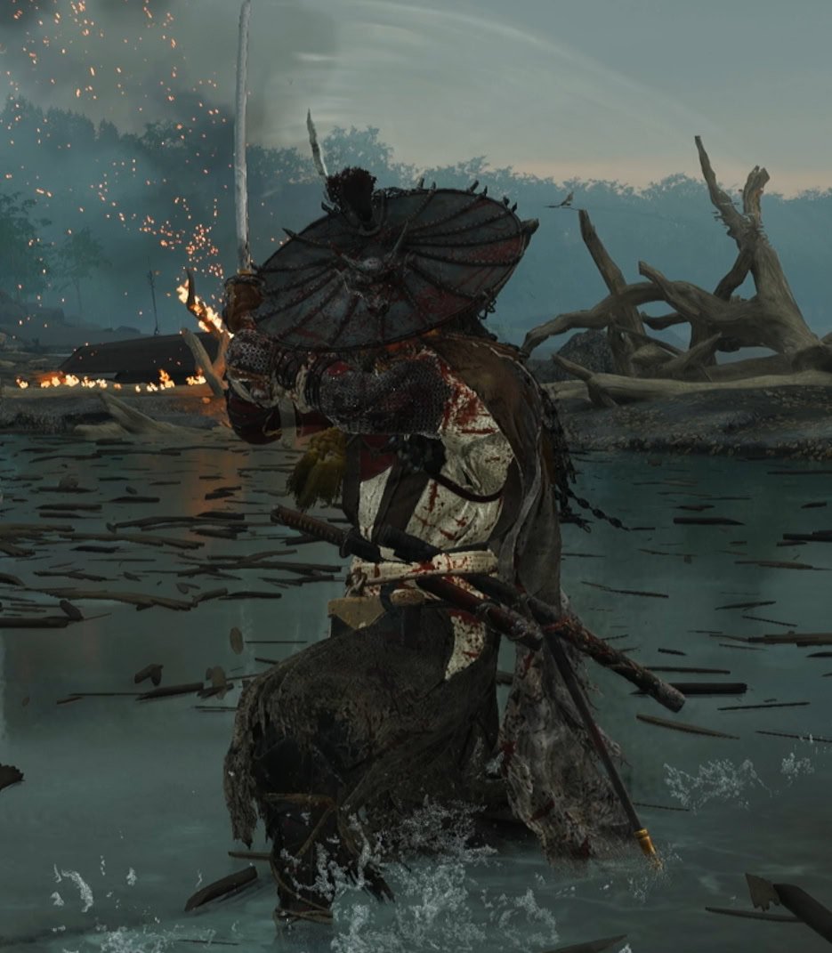 When the Dragon bends his knees and holds his naginata almost parallel to his body with a blue glint, he’s using a delayed combo.