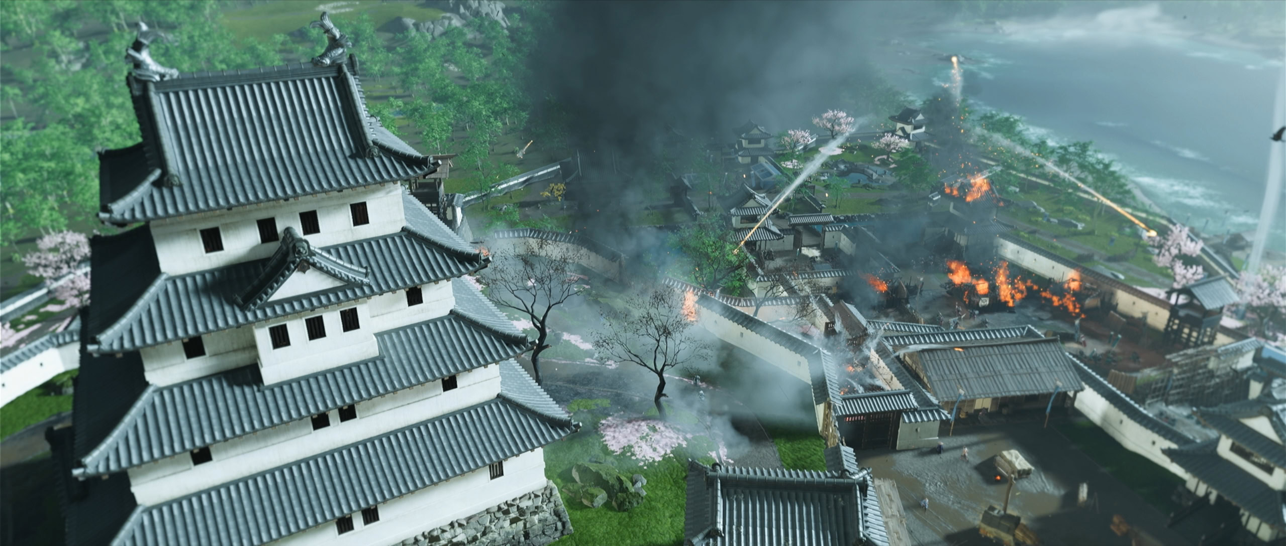 Escort the Spider to his execution pyre and there will be something in the distance. Pull out your spyglass and observe the war ships coming your way. Lord Saito himself has joined the assault on Matsumae Castle.