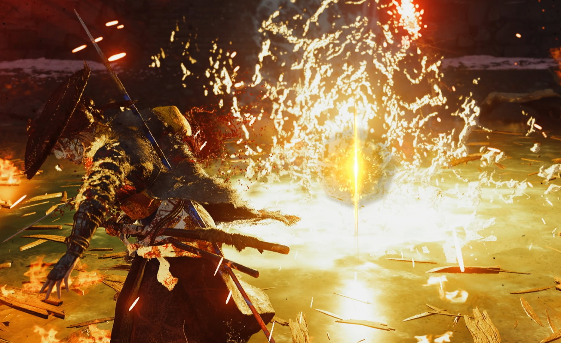 If he starts with an overhead swing and no glint, he’ll do a quick set of seven slashes and thrusts. This isn’t particularly hard to dodge or parry, but blocking too long can be detrimental.