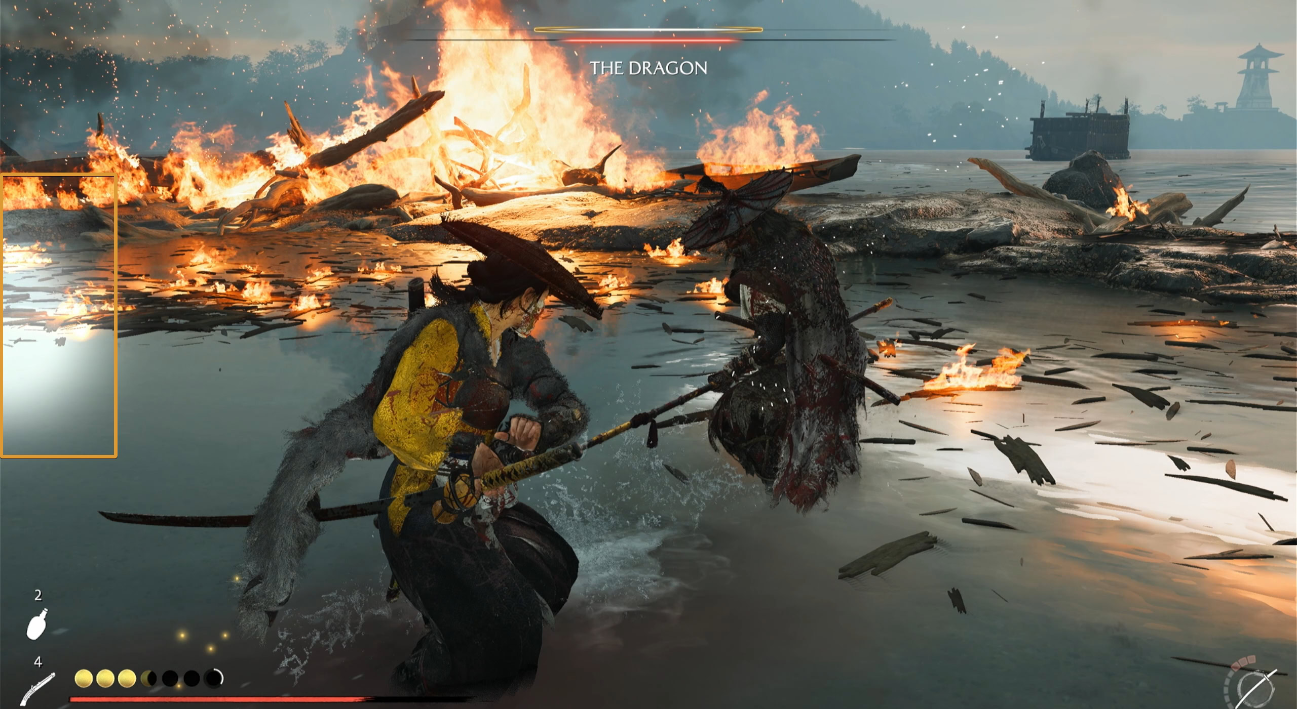 After the cutscene with Saito attacking Matsumae Castle, you’ll be able to fight The Dragon along with The Spider. Like his father, the Dragon uses a variety of weapons including the katana, naginata, and pistol.