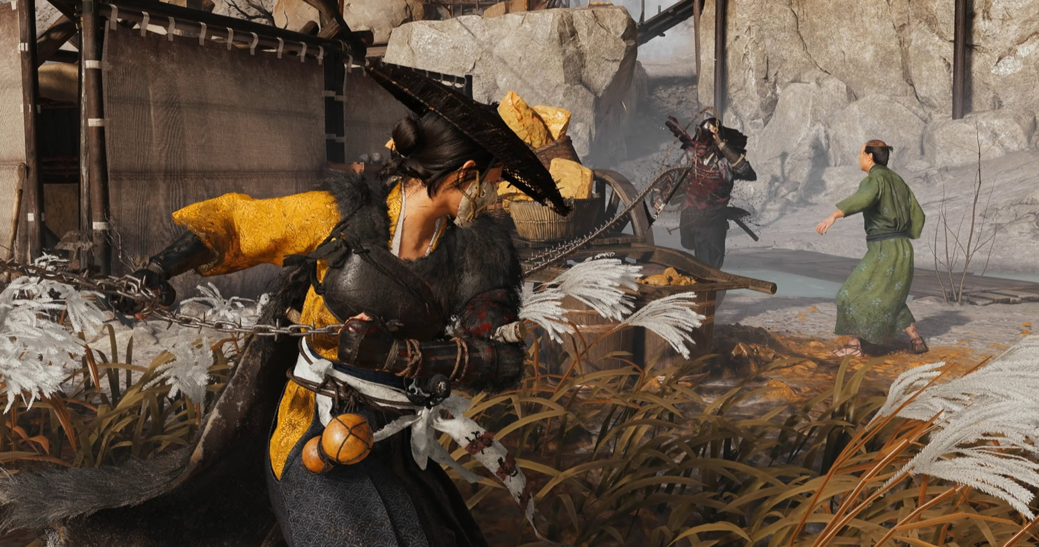 When you reach the other side, use Ghost Stance and kill all the soldiers in the area. A cutscene will start and you can begin working to rescue Oyuki.
