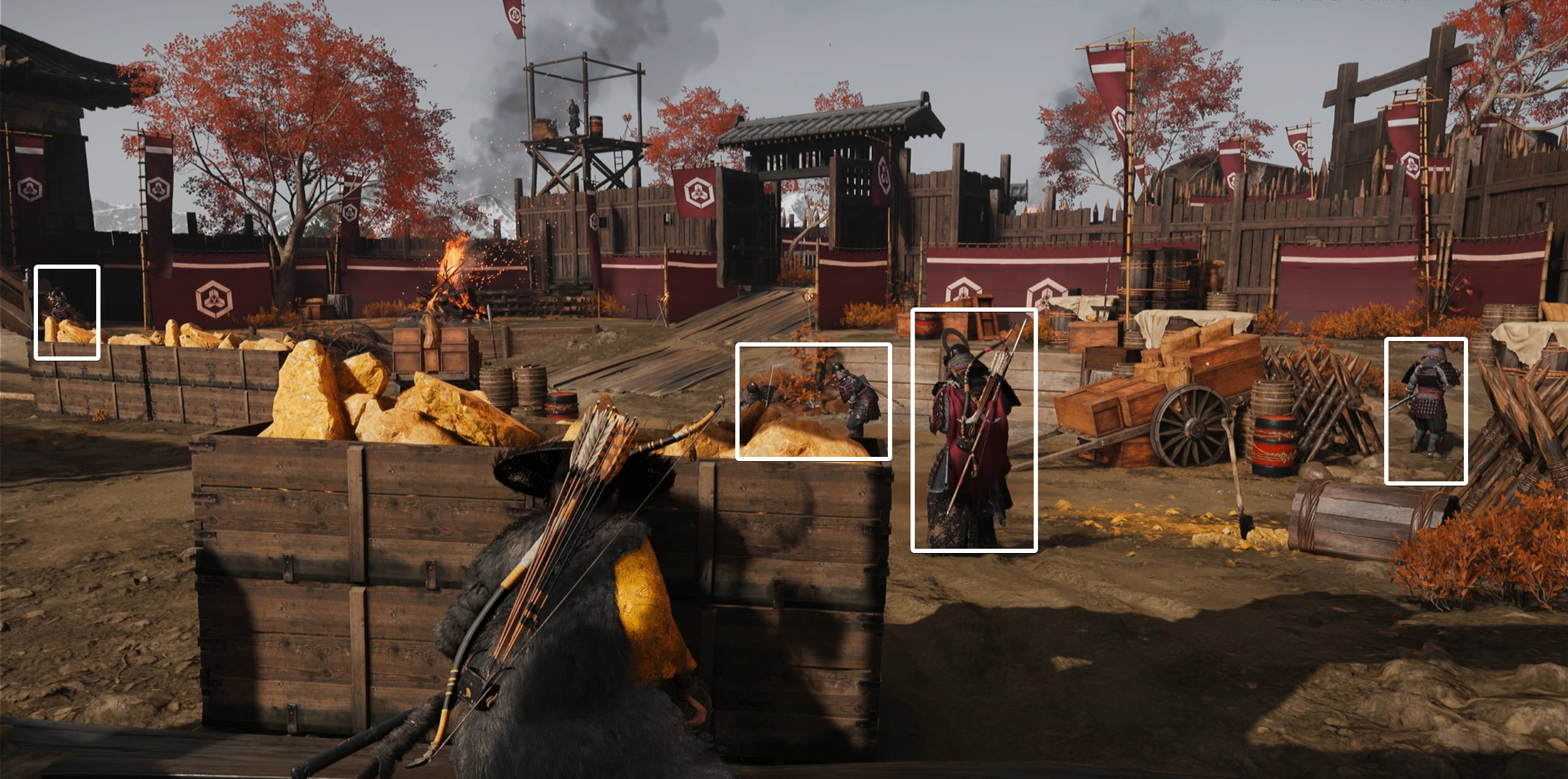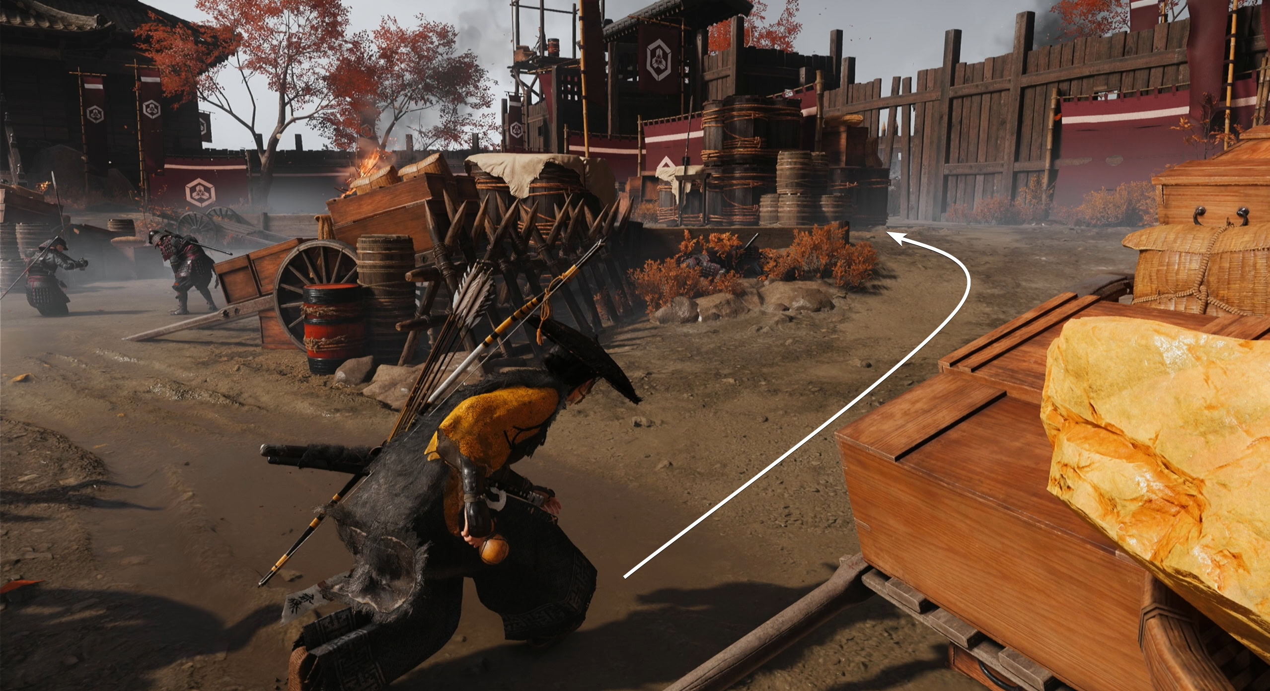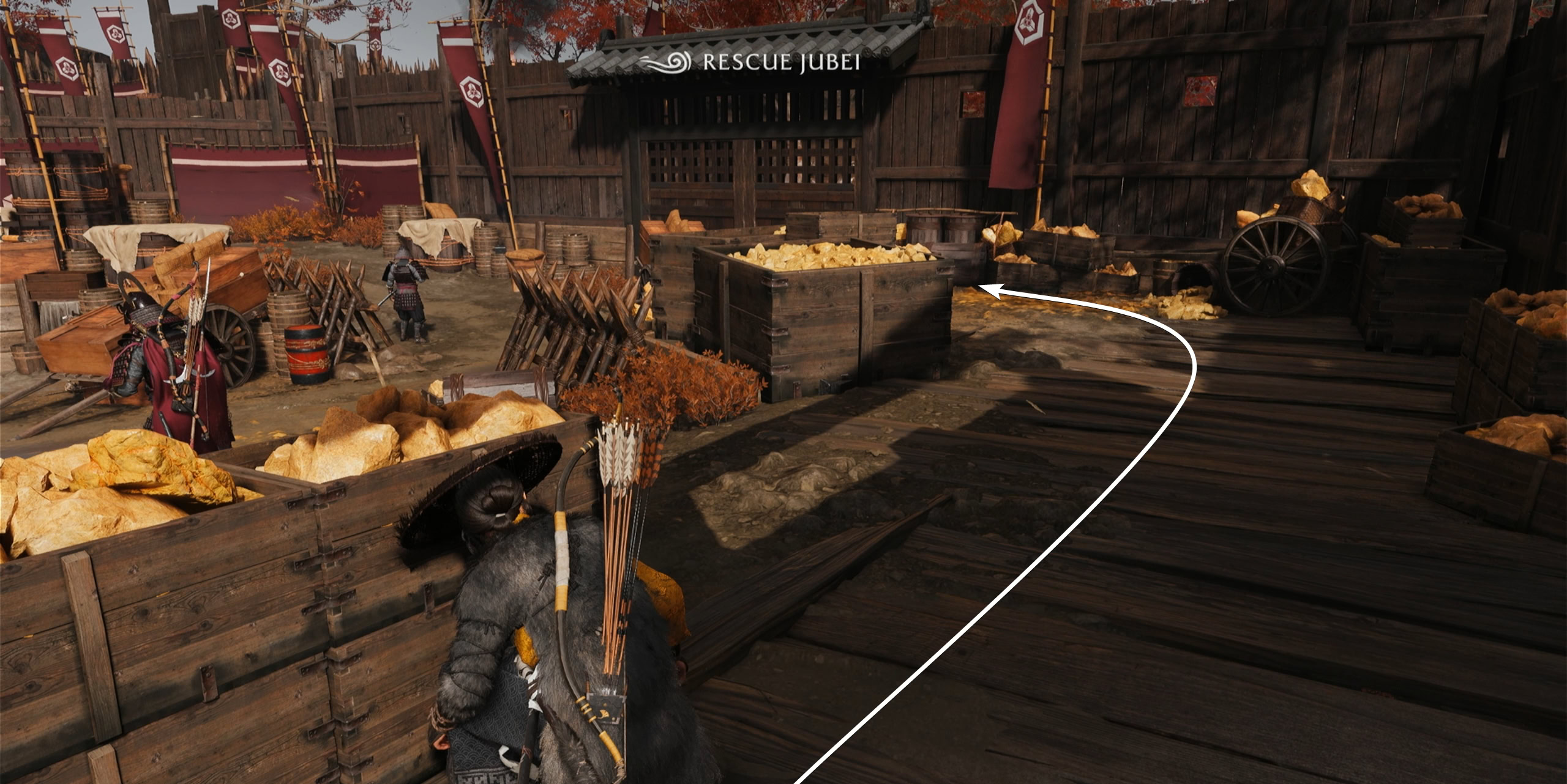 This area is packed with Saito’s men and a good way to clear the area is to quietly take out the men on the right side, then the left side from where you start.