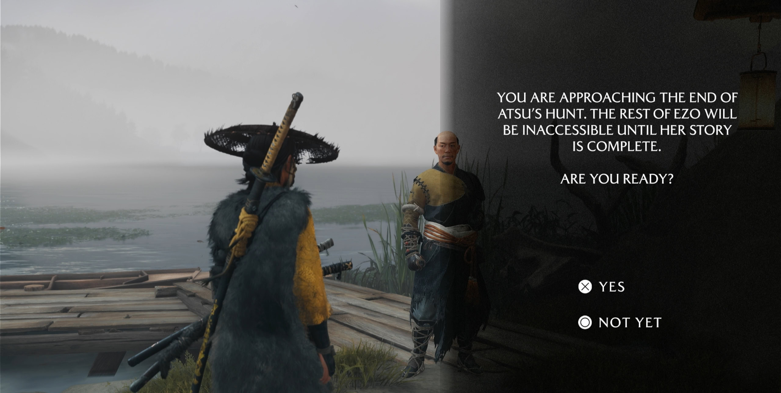 If you are feeling confident and are ready to begin, select Yes to continue with the story. You will not be able to return to the rest of Ezo until the mission is complete.