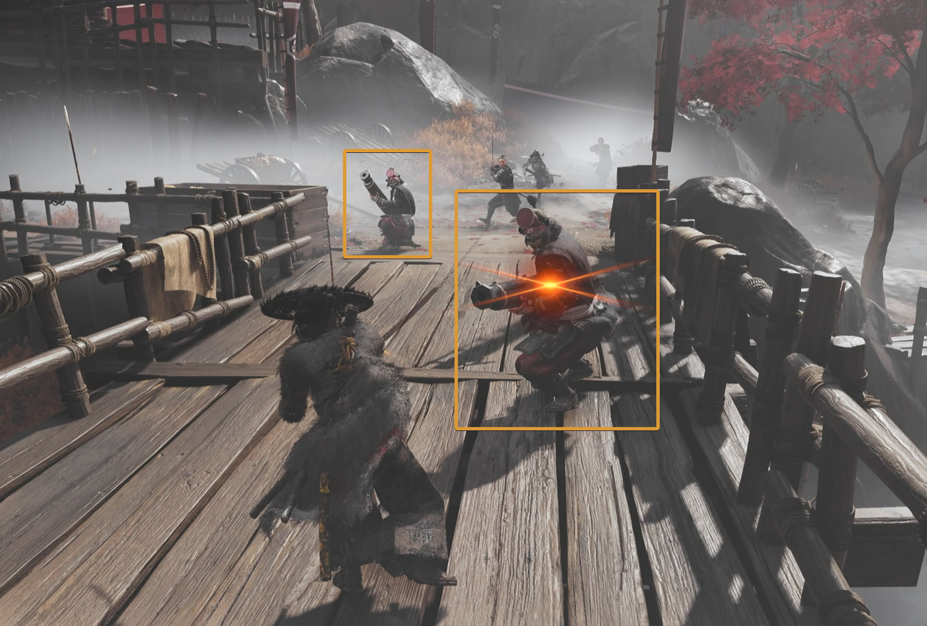 When you enter the next area, look for cover to avoid the gunners. Only move between their volleys. Get close to them so they’re forced to draw their swords and defeat them.