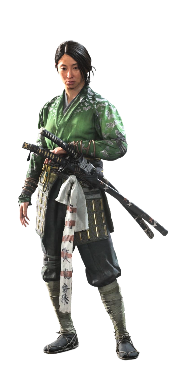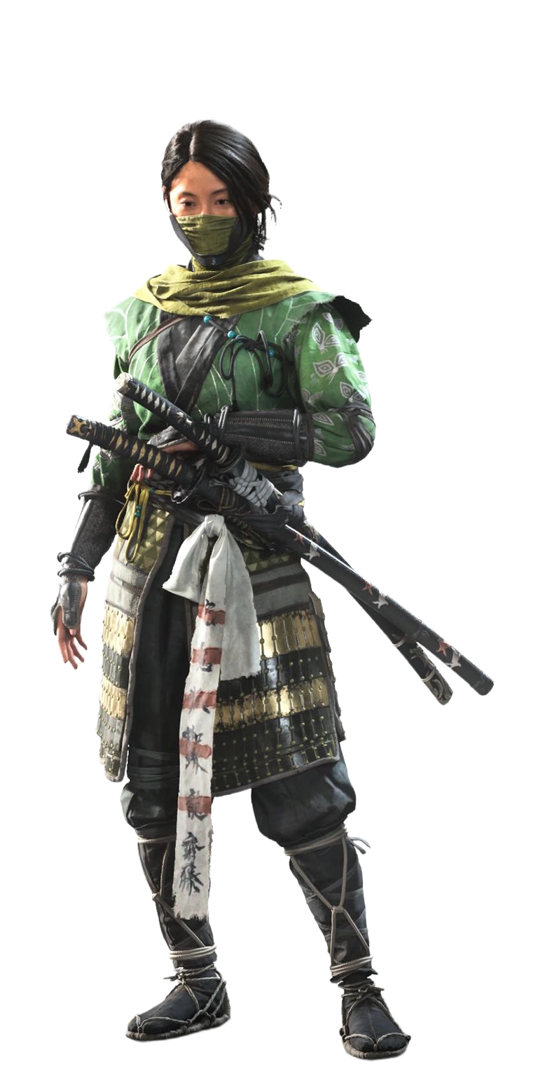 Burrowed Moss features a green kimono with gold accents and black undertones.