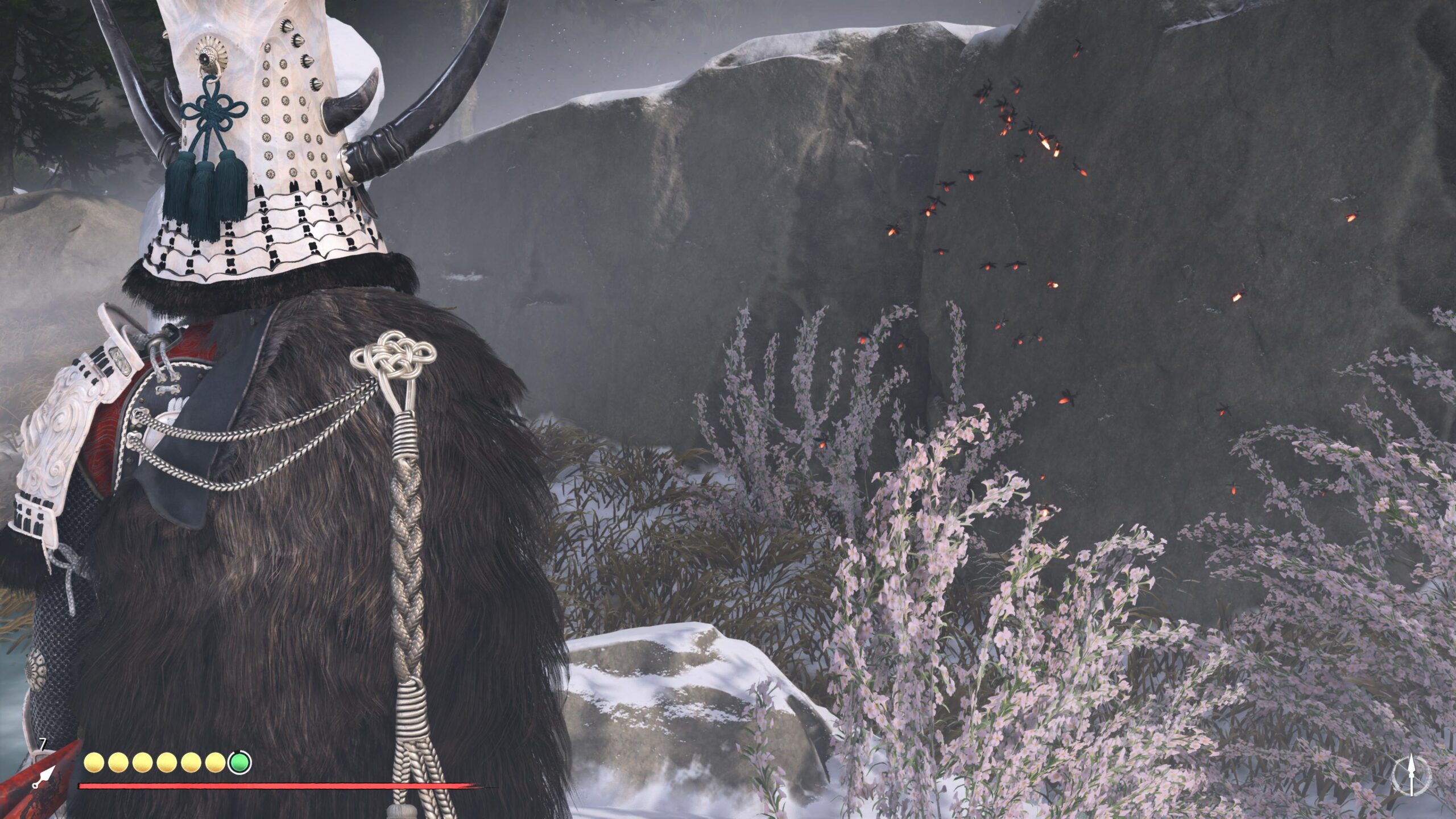 The red Yuki Mushi will lead you to a small opening in the rocks that you’ll need to crawl through. On the other side, you’ll see the Old Home.
