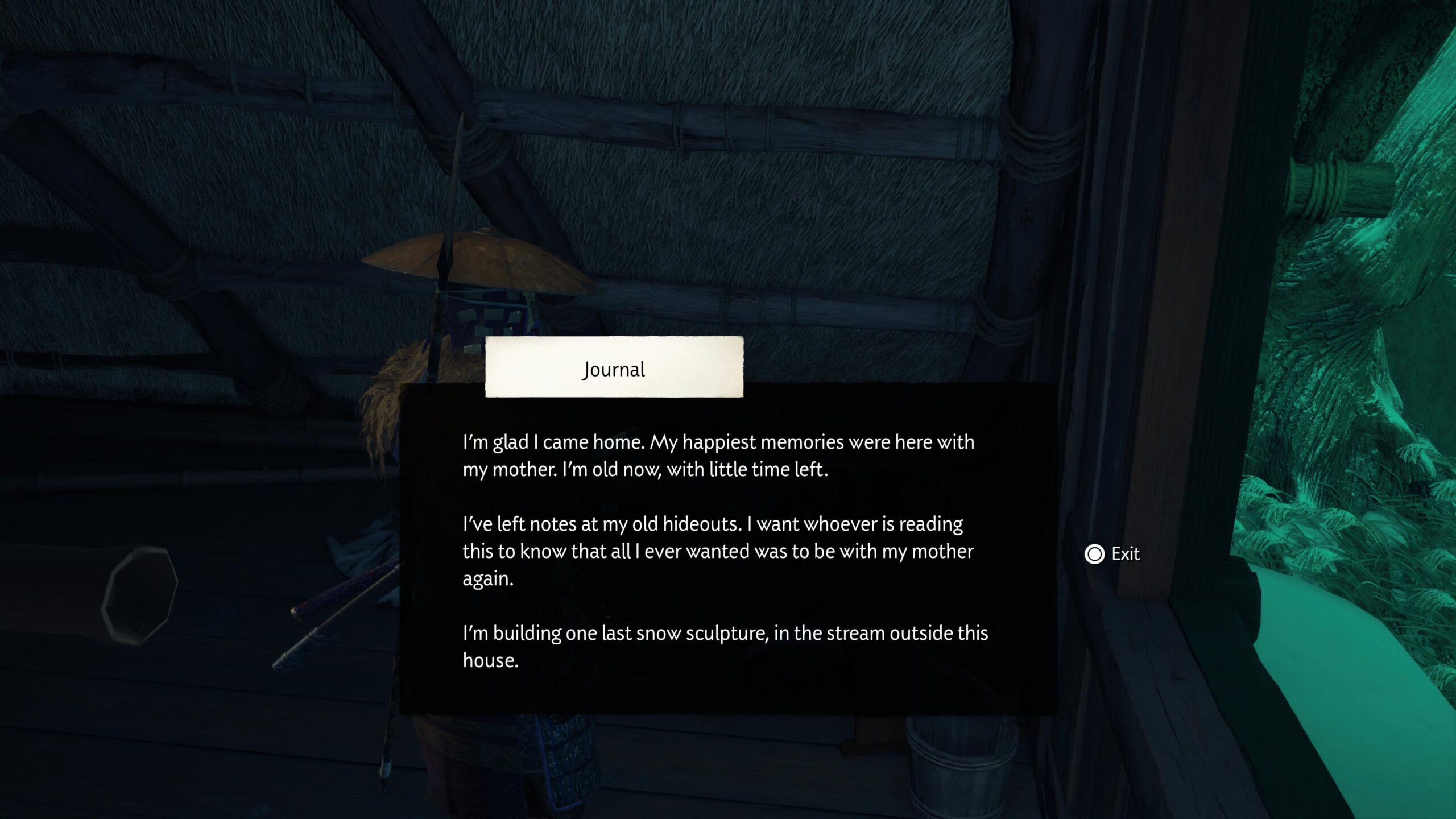 You’ll encounter some more red Yuki Mushi that will lead you to an Abandoned Shack where you’ll discover another note from the daughter.