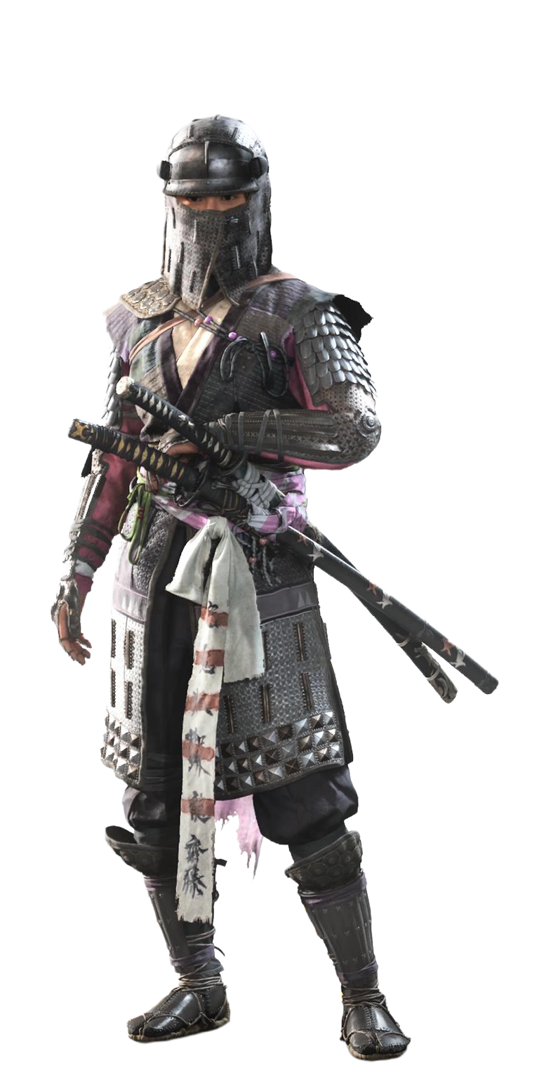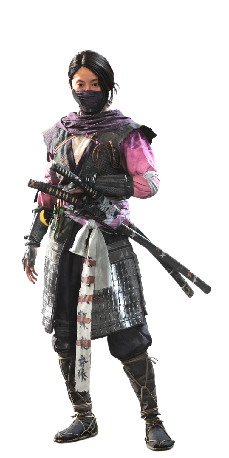 Hidden Sakura features a pinky purple kimono that gets concealed as the accent color to a primarily black outfit as you upgrade it.