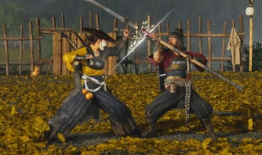 Ginji’s Guard Armor is obtainable by all players in Ghost of Yotei and features a hakama, light plate armor, straw cape, and wide, tall helmet with a little bit of plumage on the top.