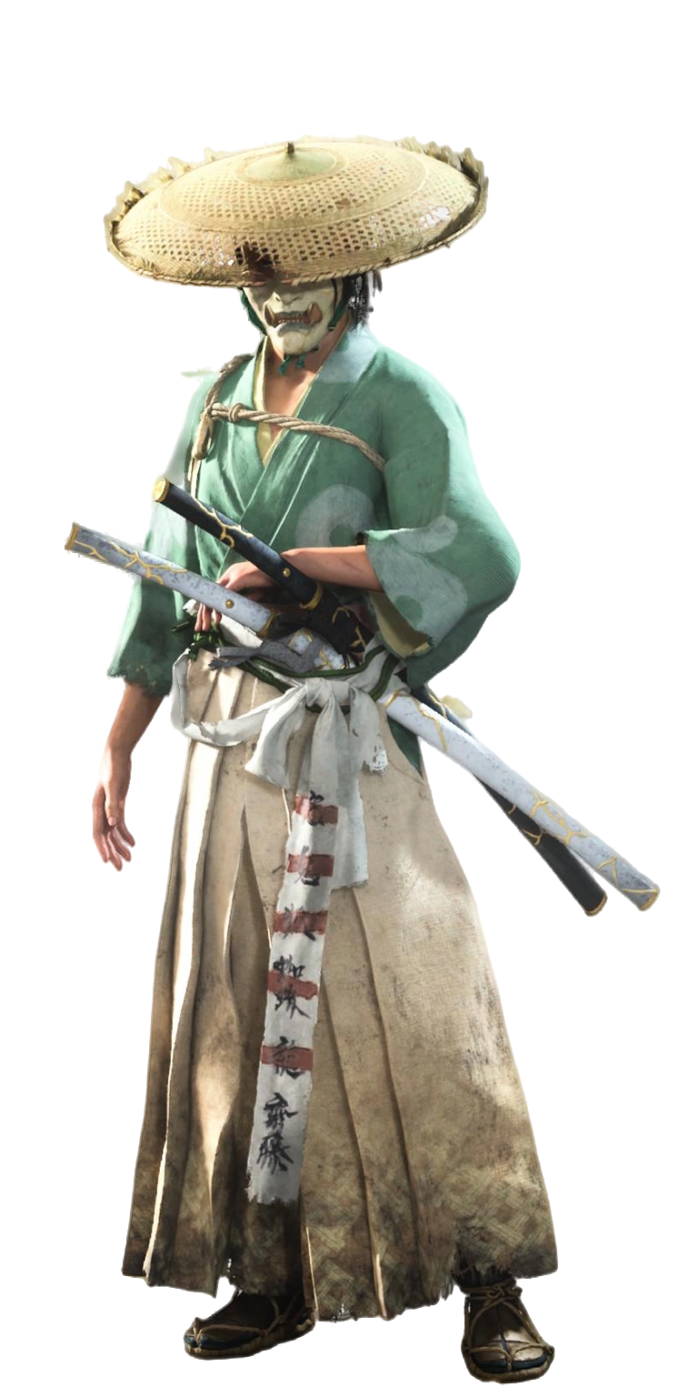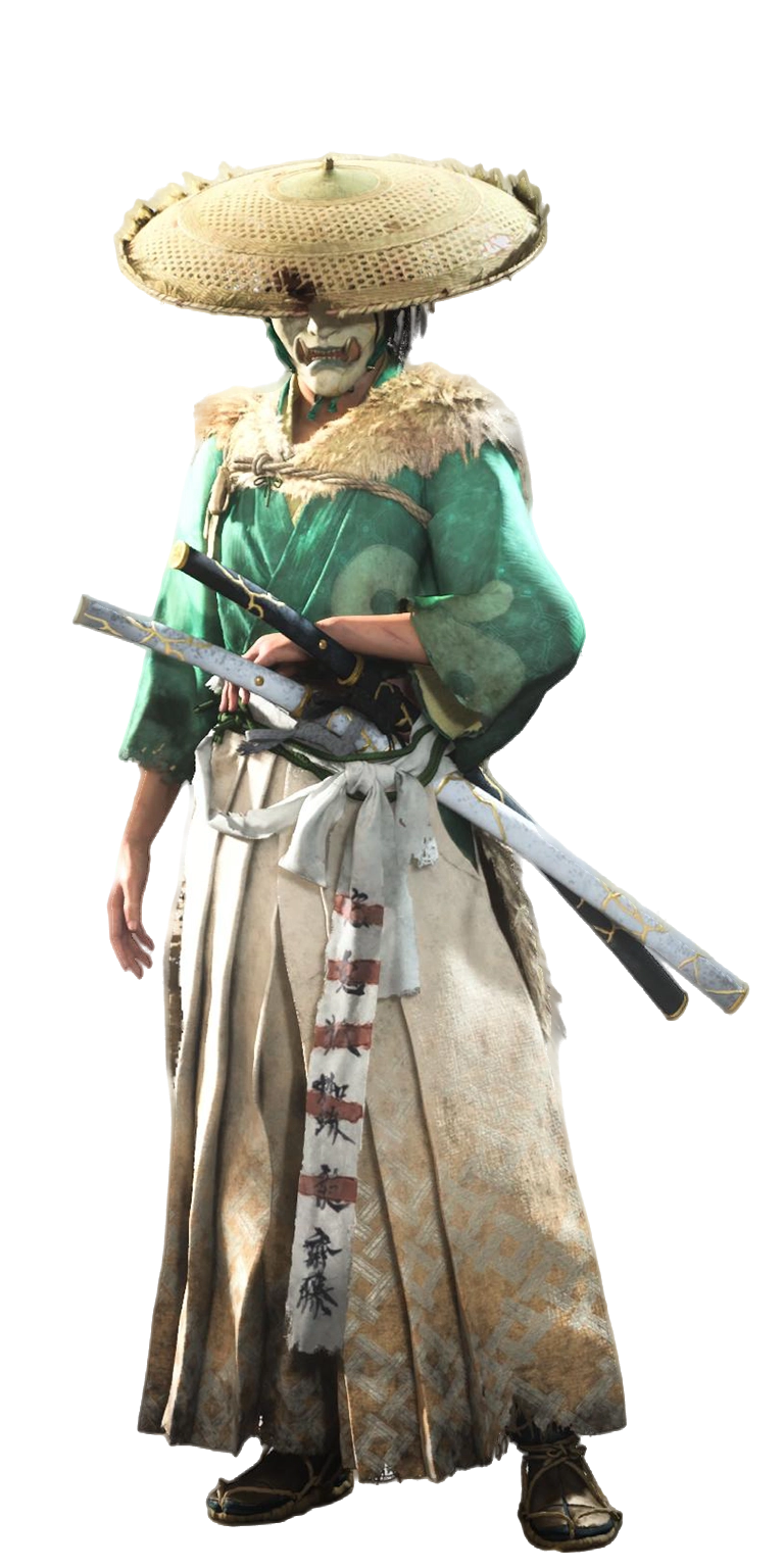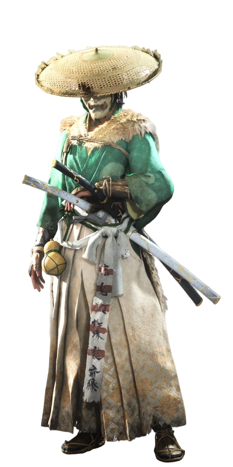 Blood and Flies uses light and dark red on the hakama with a dark brown hat, mask, and fur. You unlock it after defeating Lord Saito and finishing the main story.