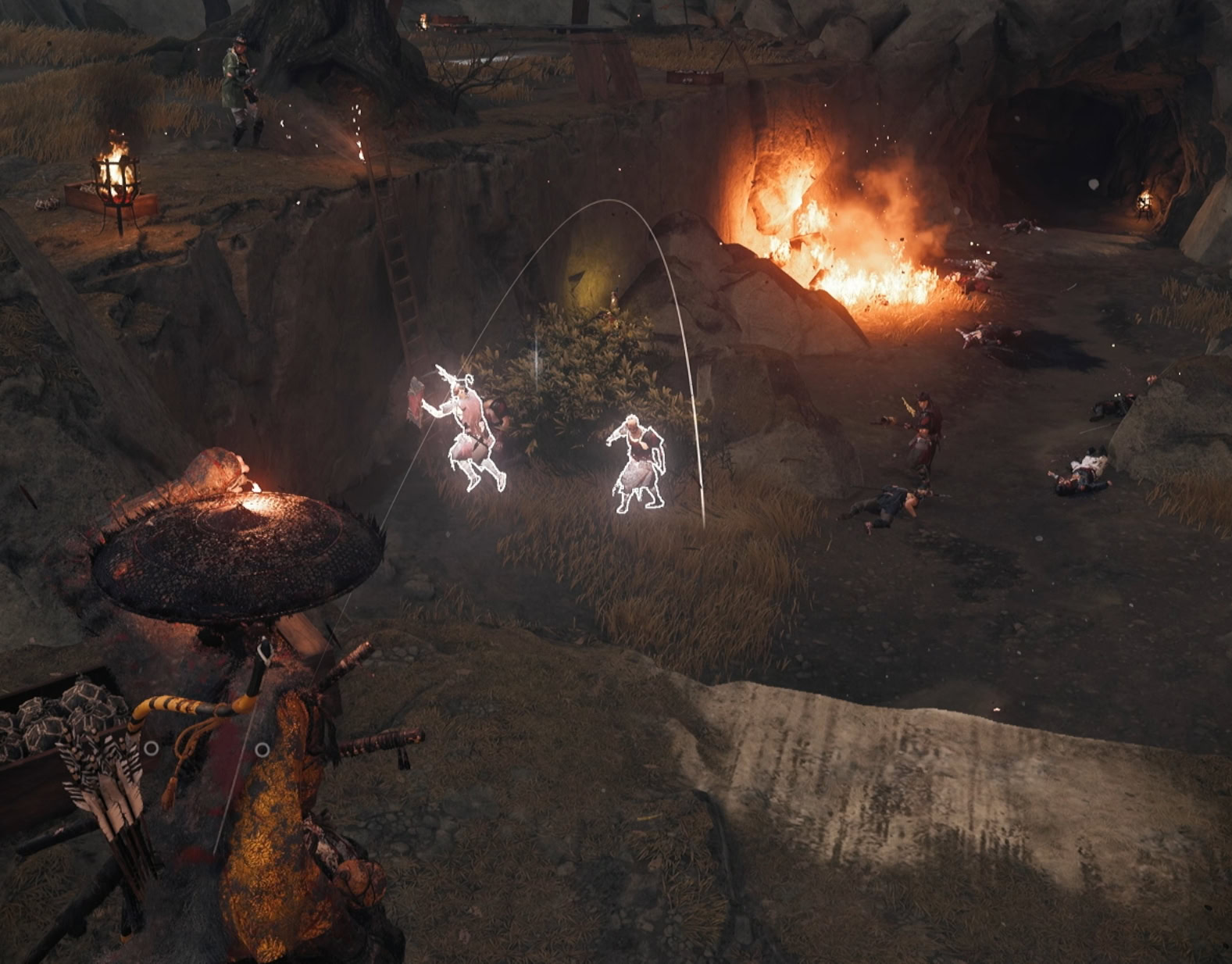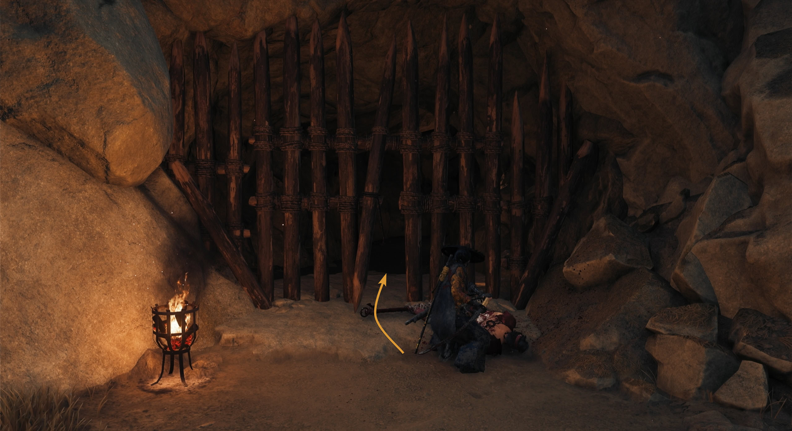 Fight your way through the raiders and reach the bomb maker. After clearing the area, there’s a palisade wall blocking off a cave, squeeze through it to find more raiders to defeat.