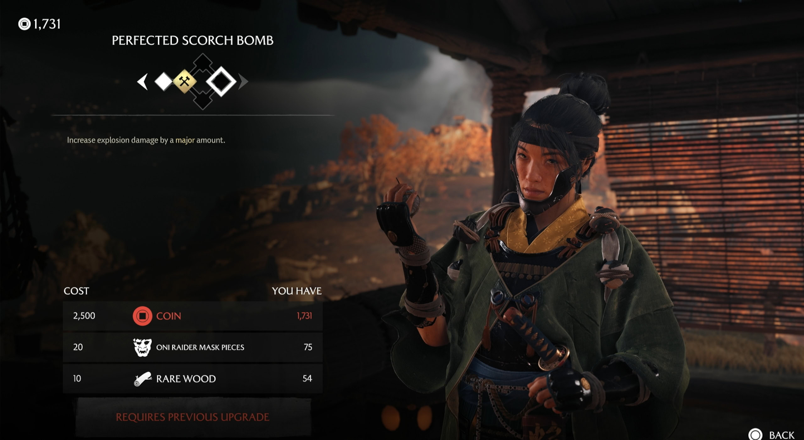 At this point the mission ends and you’ll unlock Ina as a vendor. She can upgrade your bombs, bomb capacity, and upgrade your Oni’s Flame.