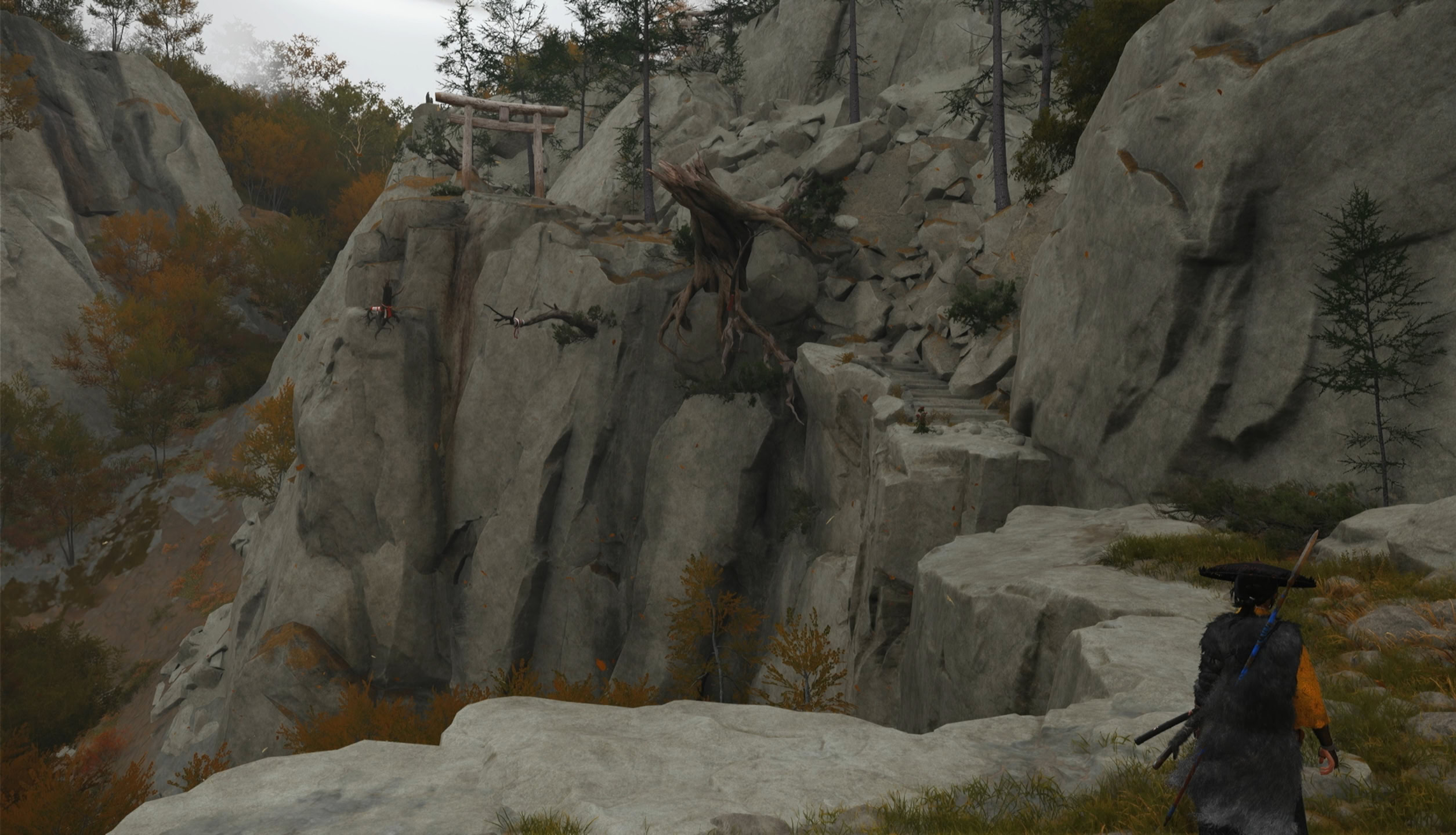 Squeeze through the opening in the rocks and you’ll find a small altar in a small grove. Go pray at the altar to unlock the Charm of Futsunushi.