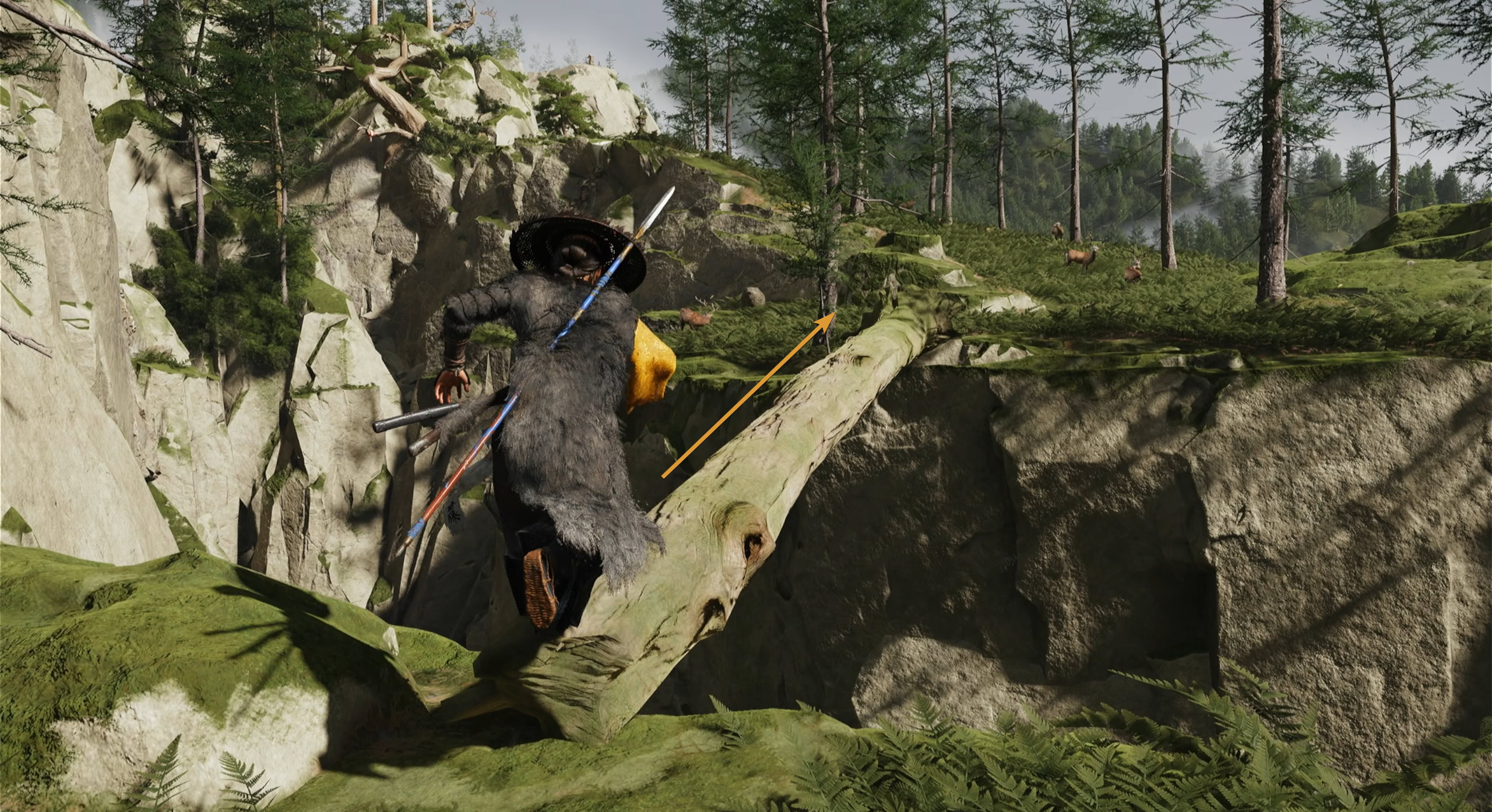 Upon entering the next phase, you’ll encounter a broken bridge. To the right of it are some ledges you can climb up. Ascend up the ledges and go across the log bridging the gap.