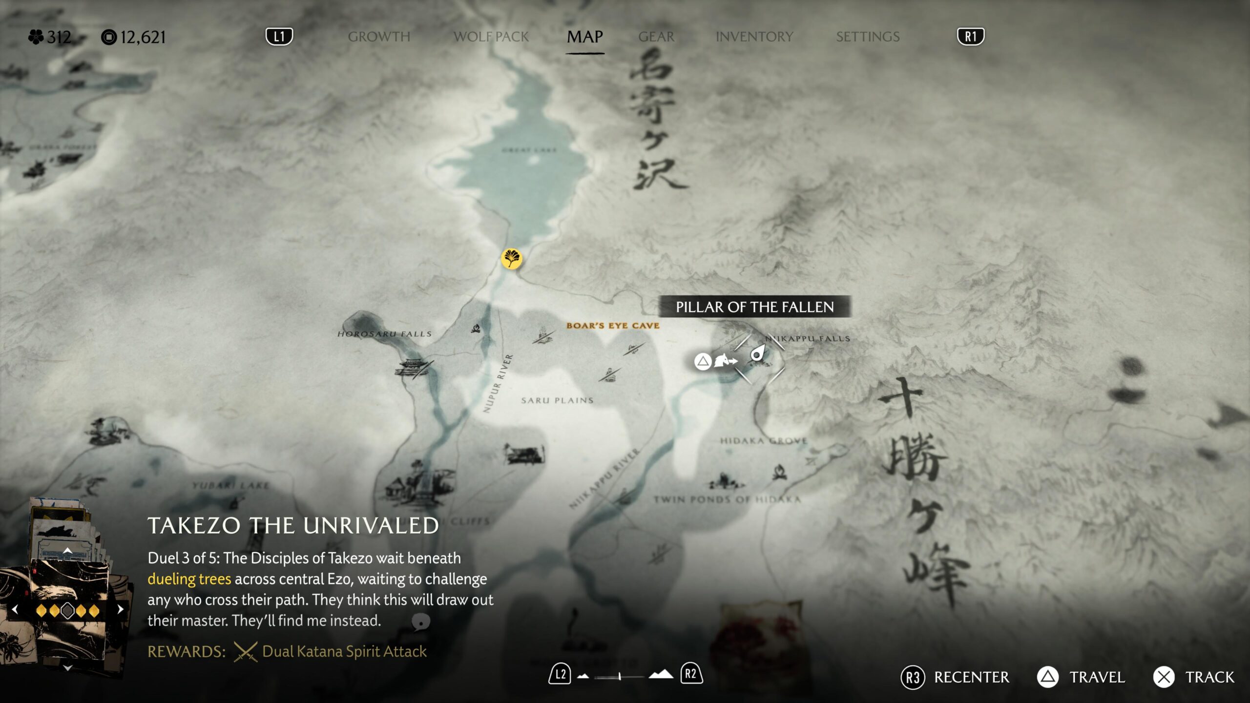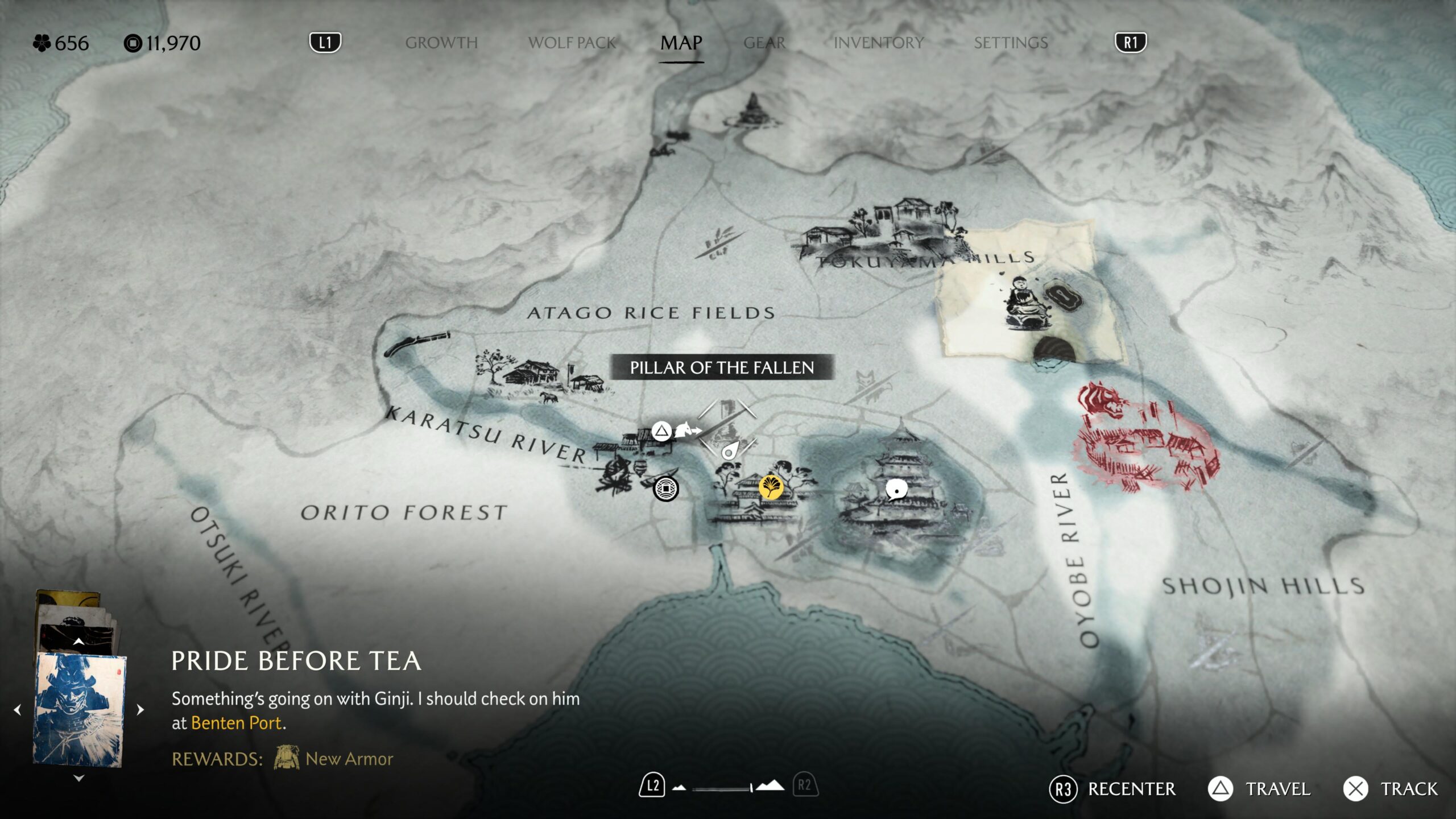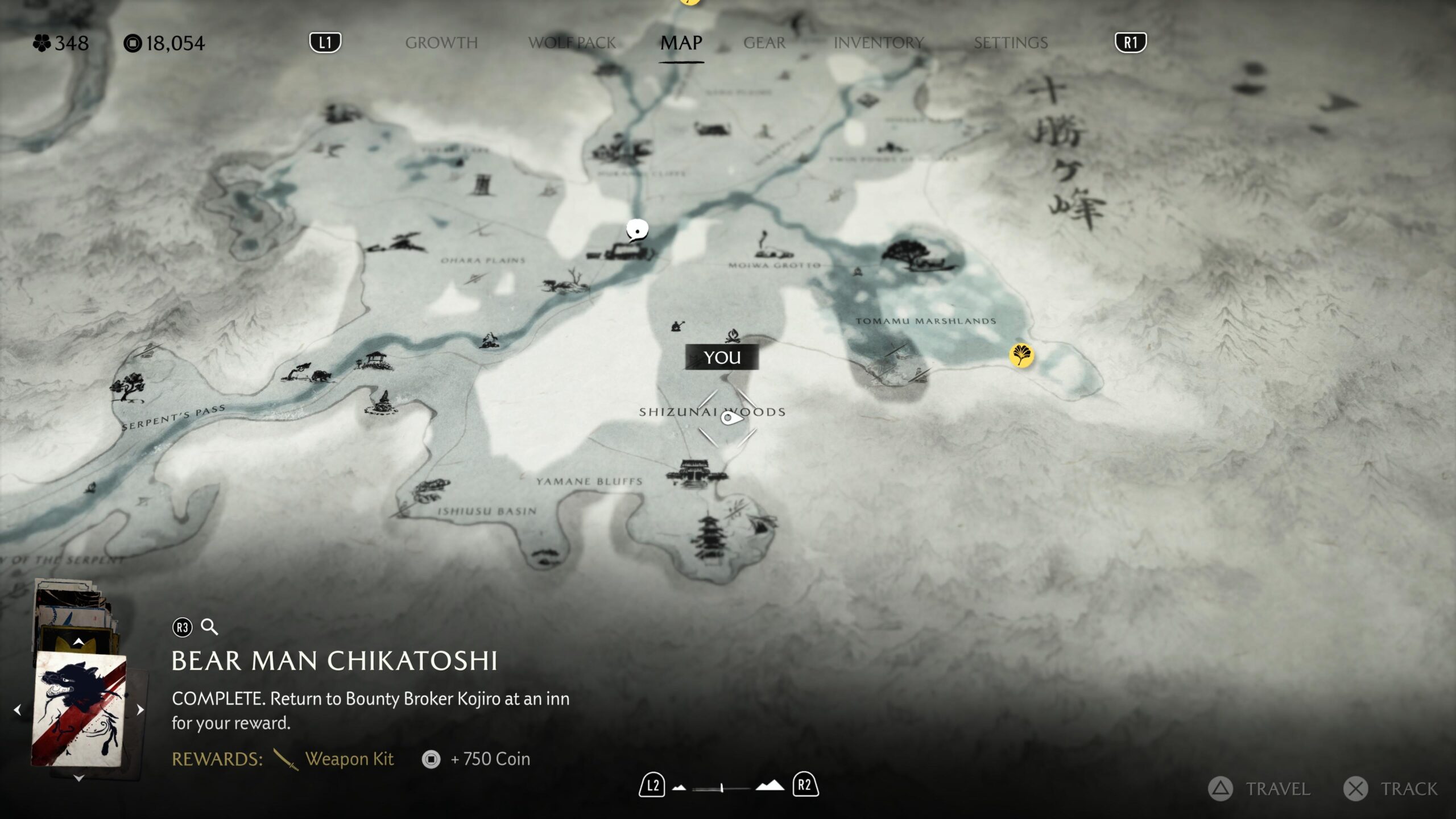 Once you run into him the third time, you’ll find him failing to attack a member of Clan Matsumae. When it’s all over, you can loot his corpse and claim Mountain Bear’s Pride.