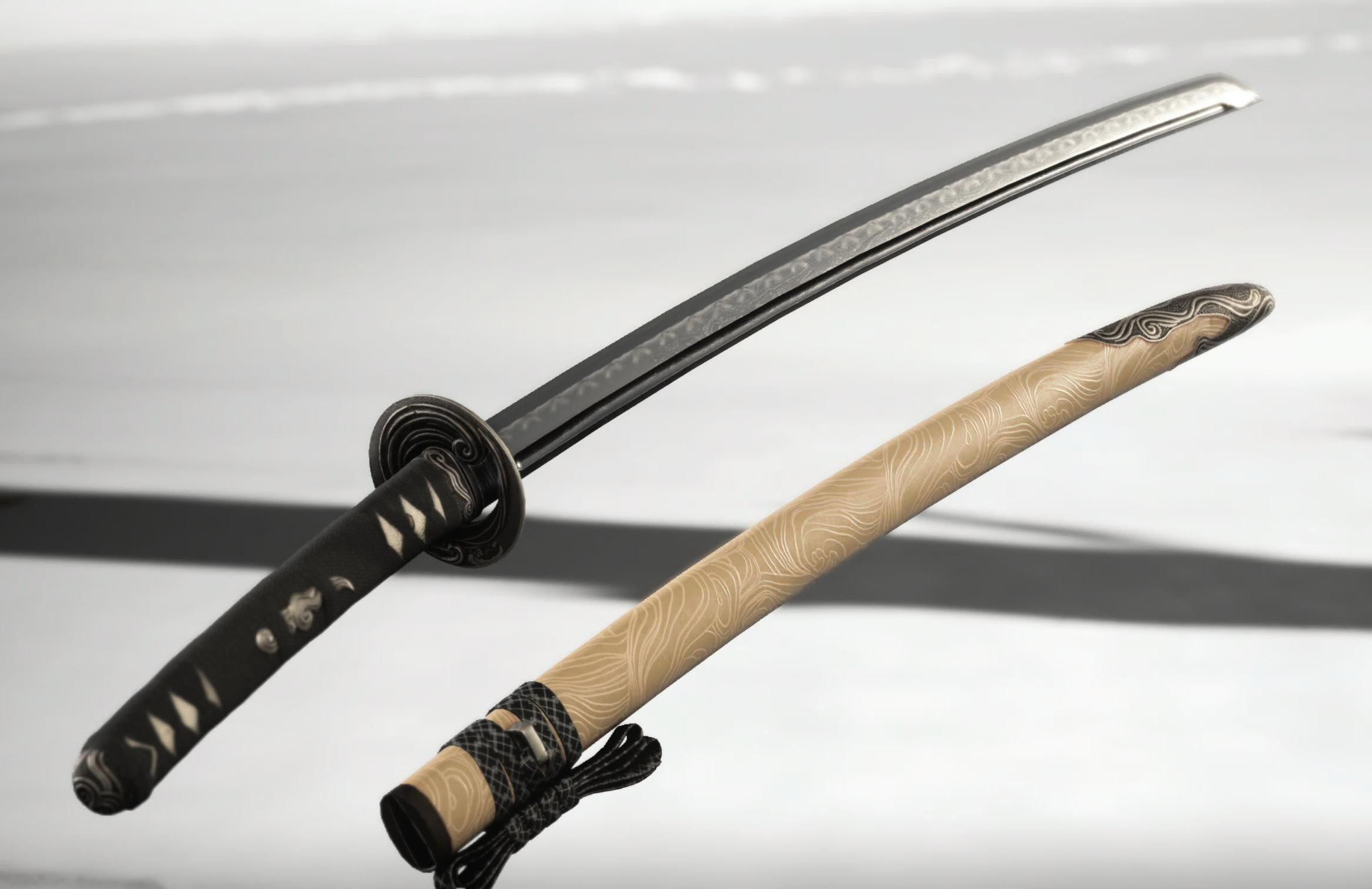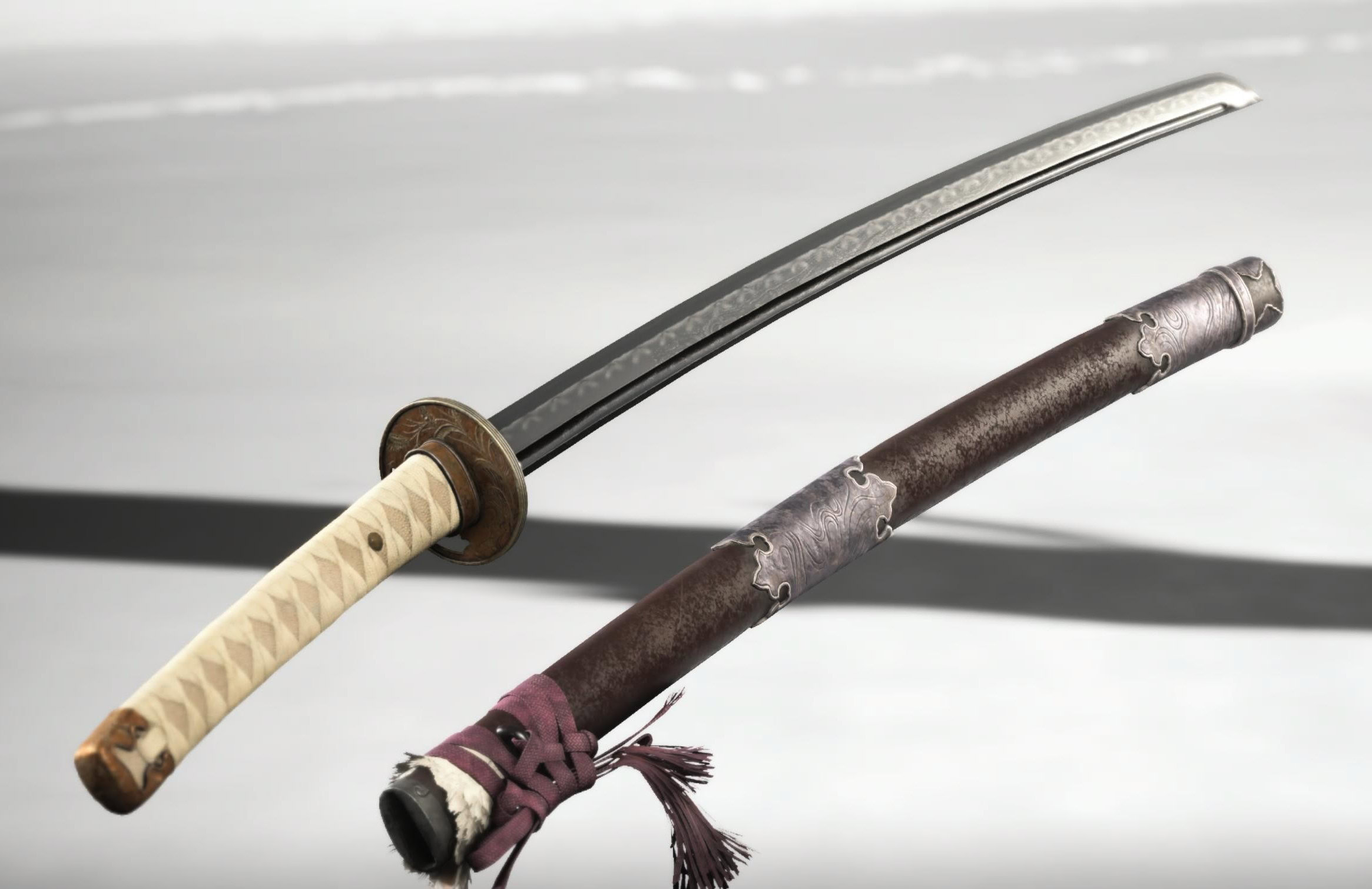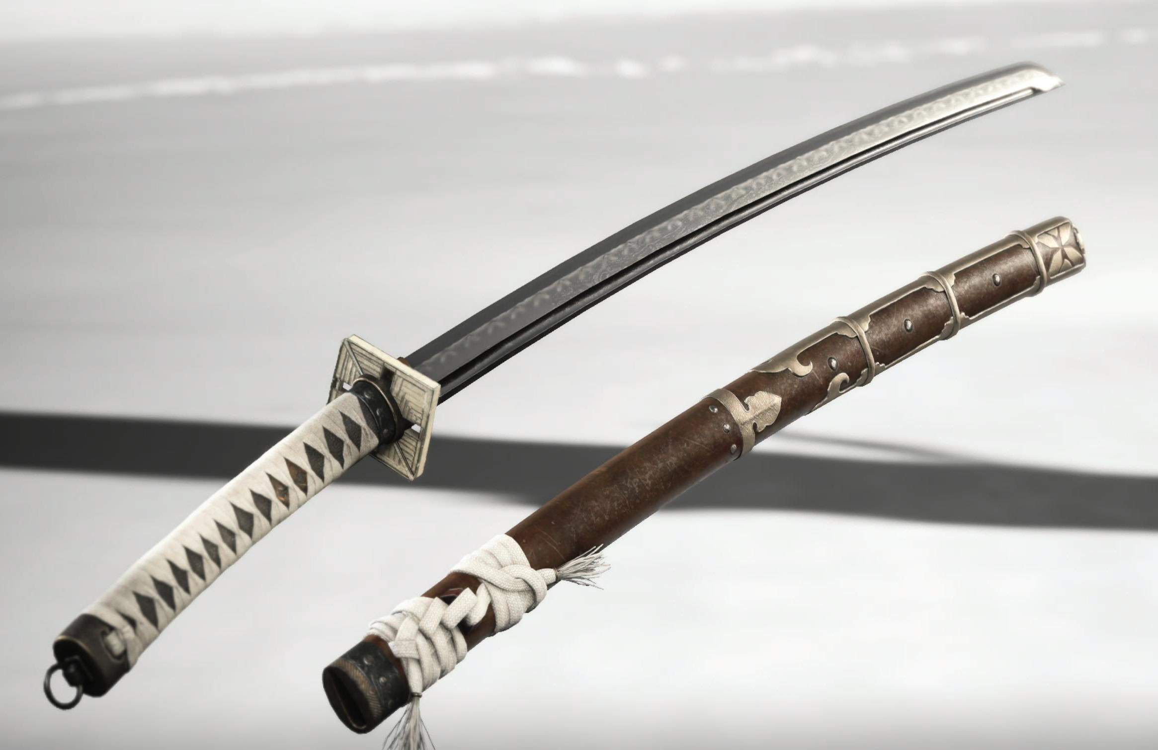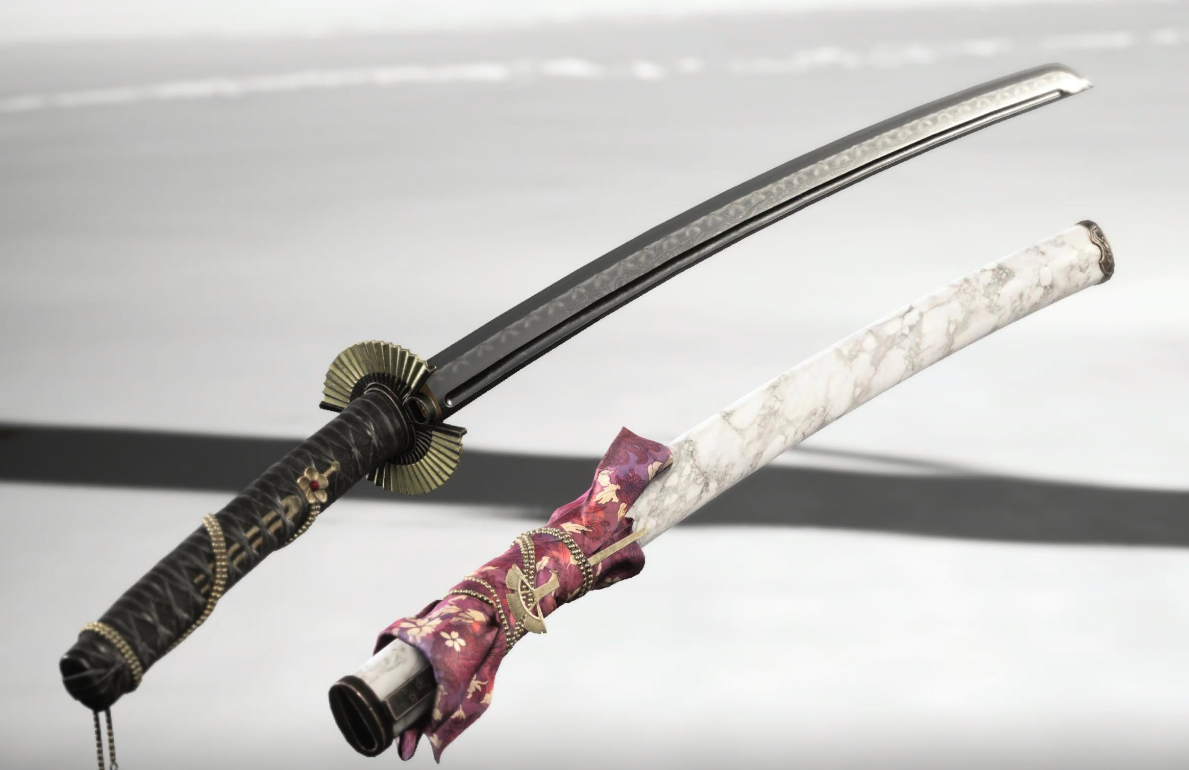 Wind’s Grace features a uniform scabbard with beige swirls that match a ton of different Armors and dyes. The tip of both the scabbard and hilt are curved, which is rather unique among Ghost of Yotei’s kits. The grip and hanging cord are black, which make the kit harder to match.