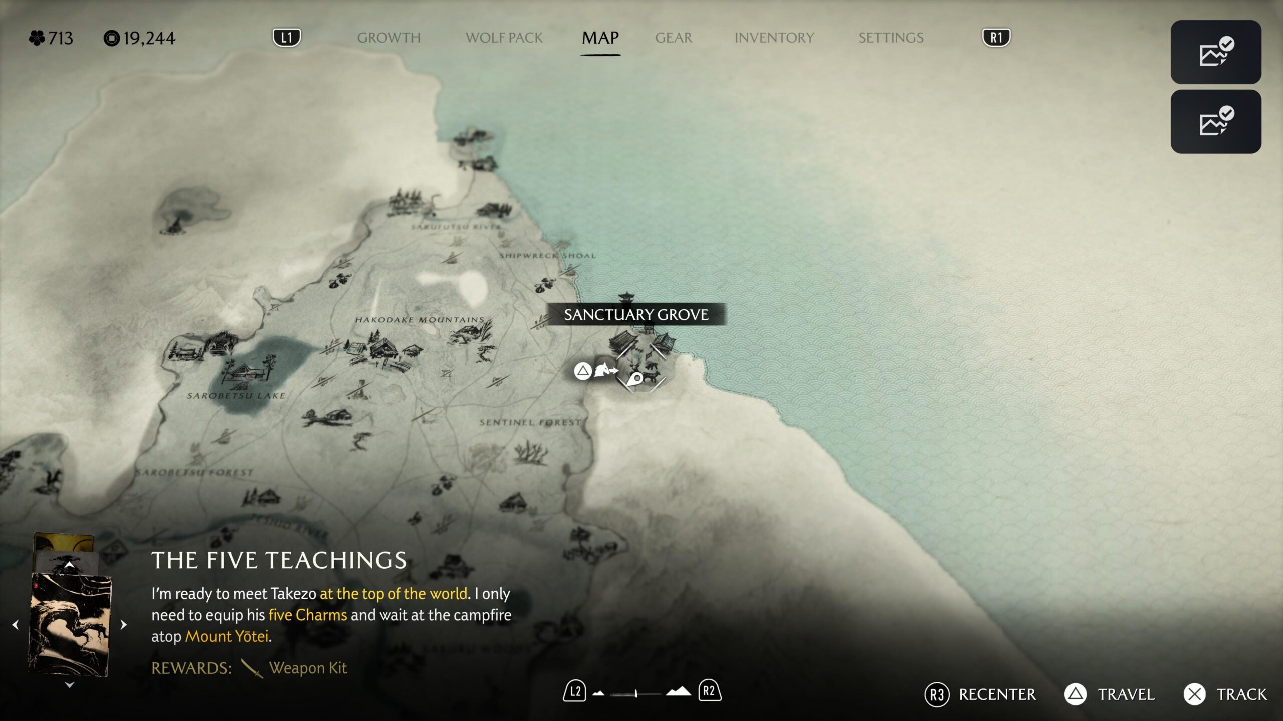 You receive Yotei’s Charge for completing the Reliquary of Resilience near Serpent’s Pass in Tokachi Range. You need to turn the statues so all the foxes are facing the big stone statue in the middle.