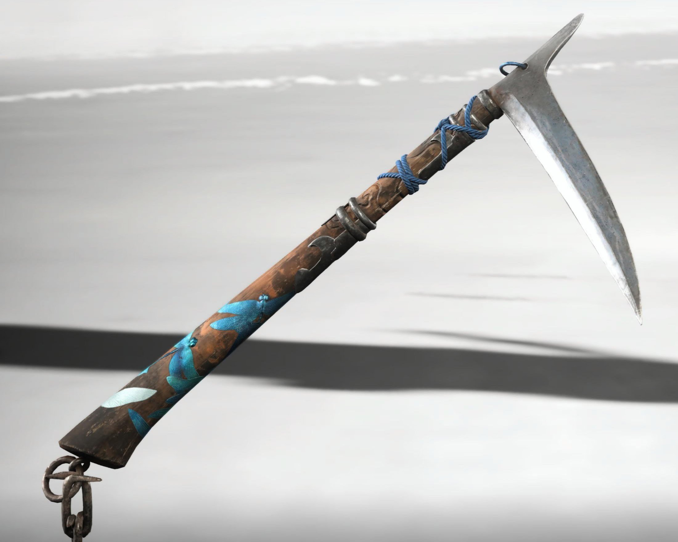 Dragonfly’s Breath has a darker wood handle covered with cerulean painted dragonflies. The metal aspects are silver. Strangely, this specific blue is not present on any of the Dragonfly Armor dyes, though it still looks decent with Archer in the Water and Forgotten Rust.