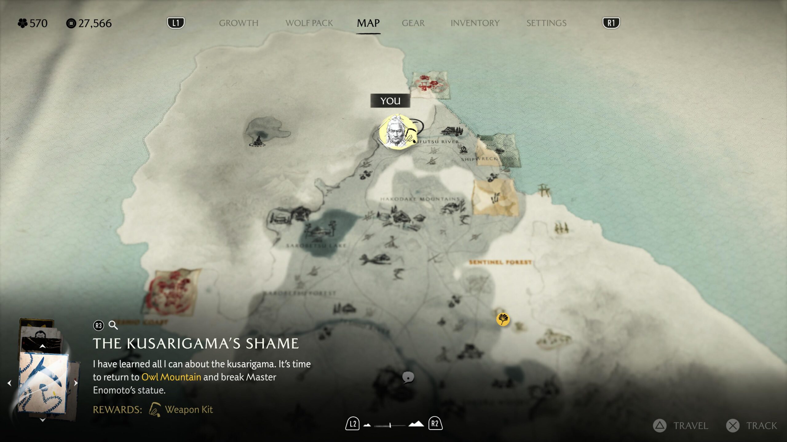 You can claim the Kusarigama of Master Enomoto at his dojo in Teshio Ridge after murdering his grandson and wrecking his statue as part of the quest “The Kusarigama’s Shame”.