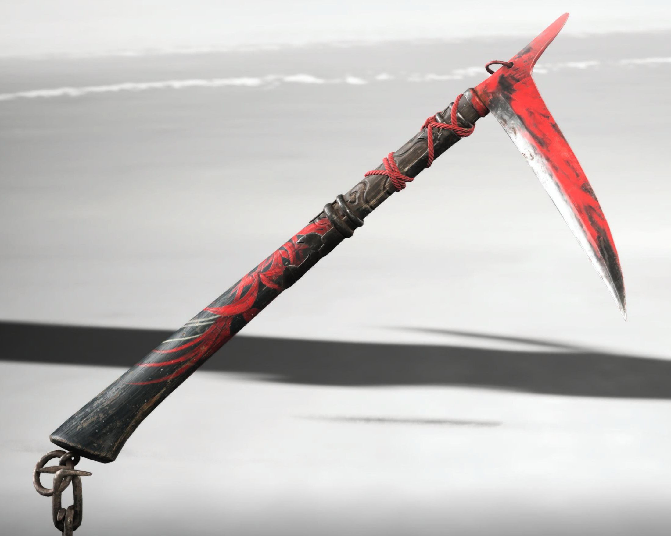 Lily’s Touch has a black base with a red spider lily painted on the handle. It looks good with any of the black and red dyes, but it’s born to be used with the Spider Lily Armor.