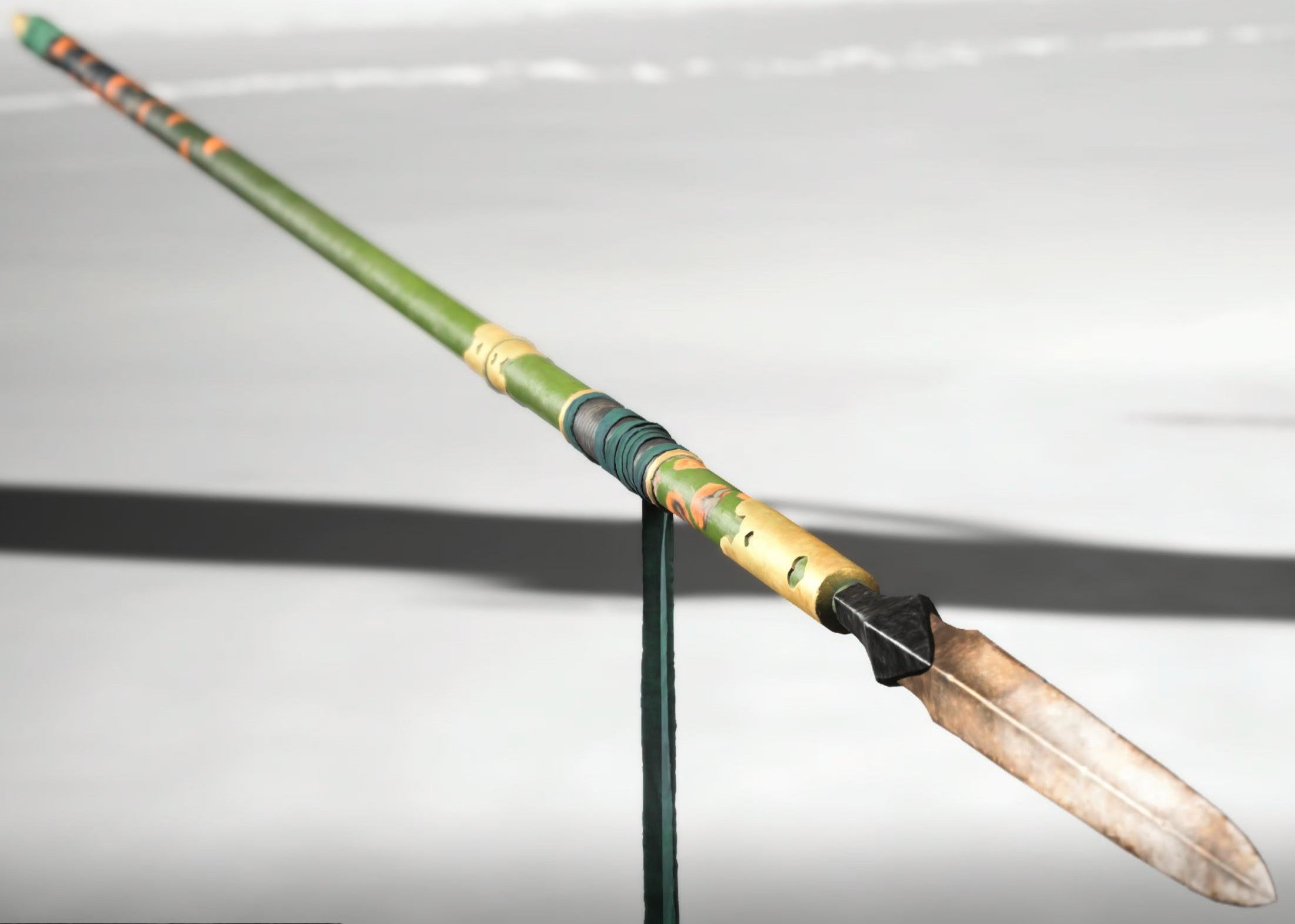Bone Dust is a primarily white spear with subtle green accents and a unique black spearhead.