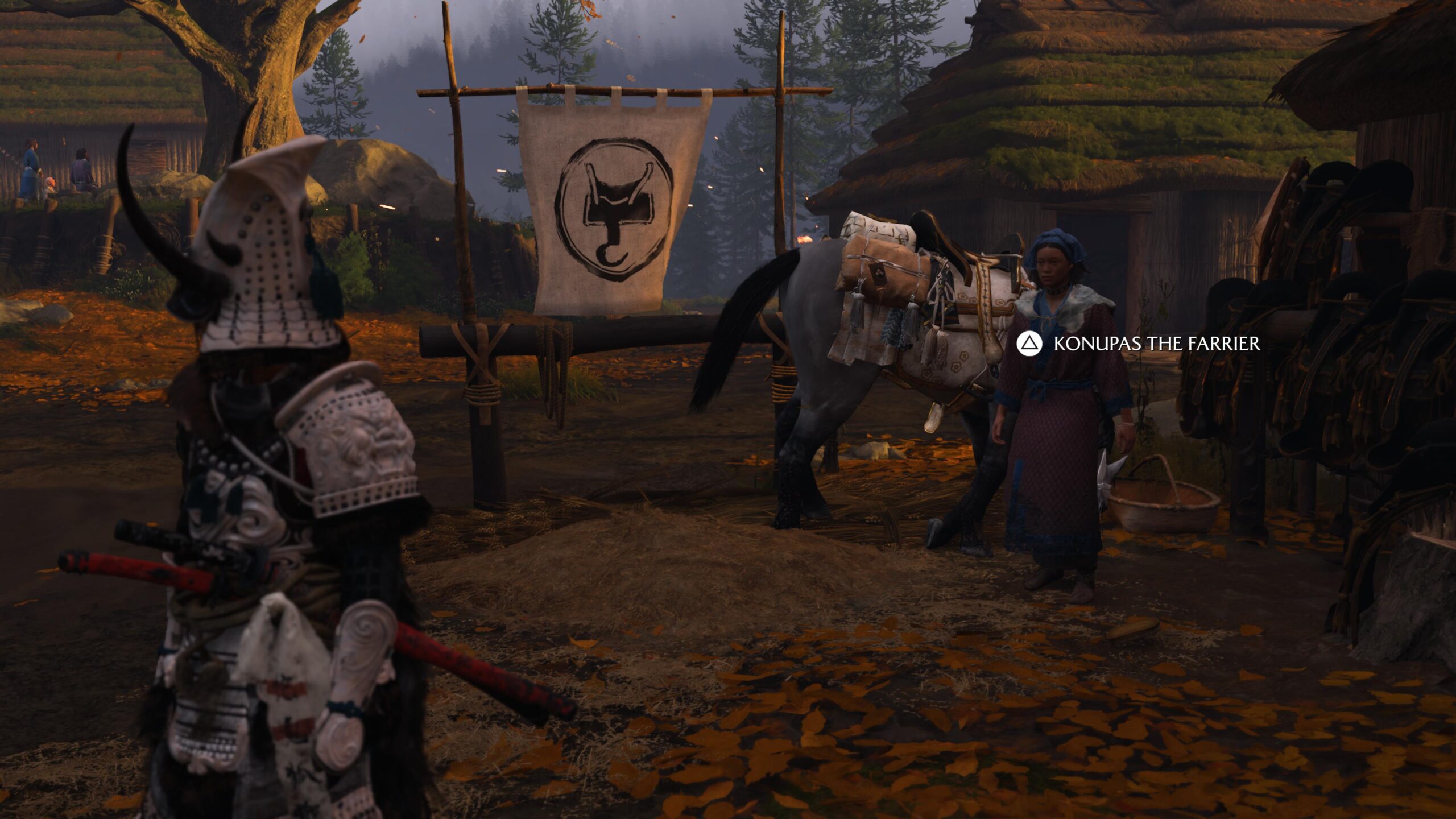 With a couple of noted exceptions, all Saddles and Dyes for Atsu’s horse are sold by Konupas the Farrier at Husko Kotan (the main hub) in Nayoro Wilds. You can also encounter her in the open world.