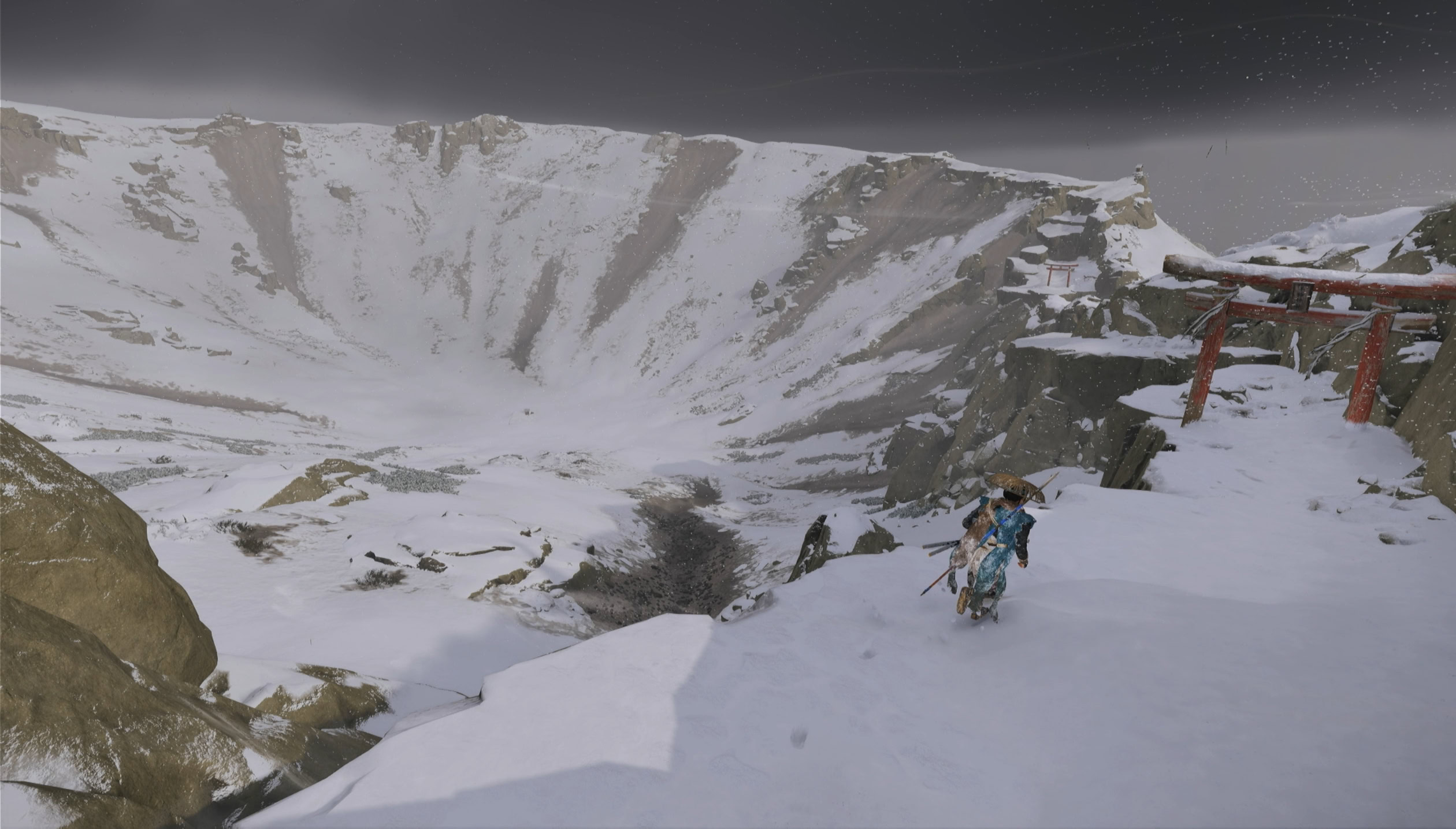 When you see the caldera, you’ll know you’re at the top of Mount Yotei. Follow the torii gates to reach your destination.