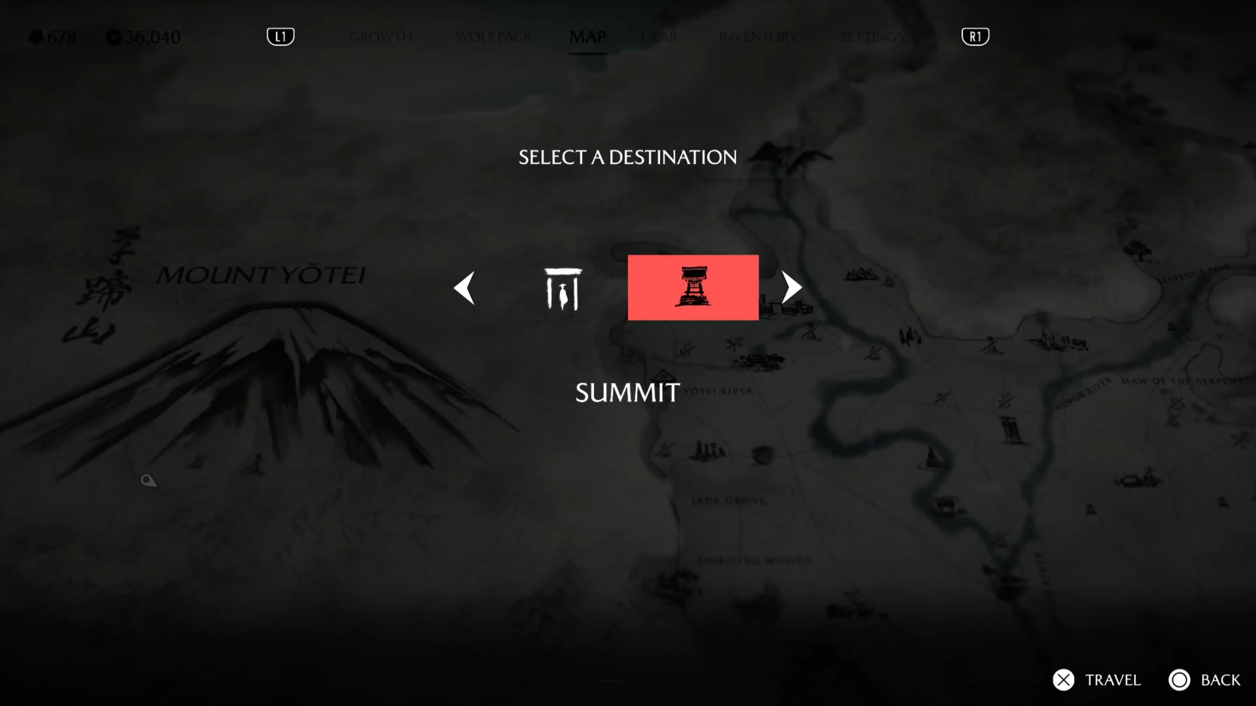 Once you’re ready to fight him, it’s time to climb Mount Yotei. There are a few options for Fast Travel points up there, including the Pillar of the Fallen and Altar of Reflection, but the one that puts you closest to your destination is by Fast Traveling to the Mount Yotei Shrine and selecting the Summit option.