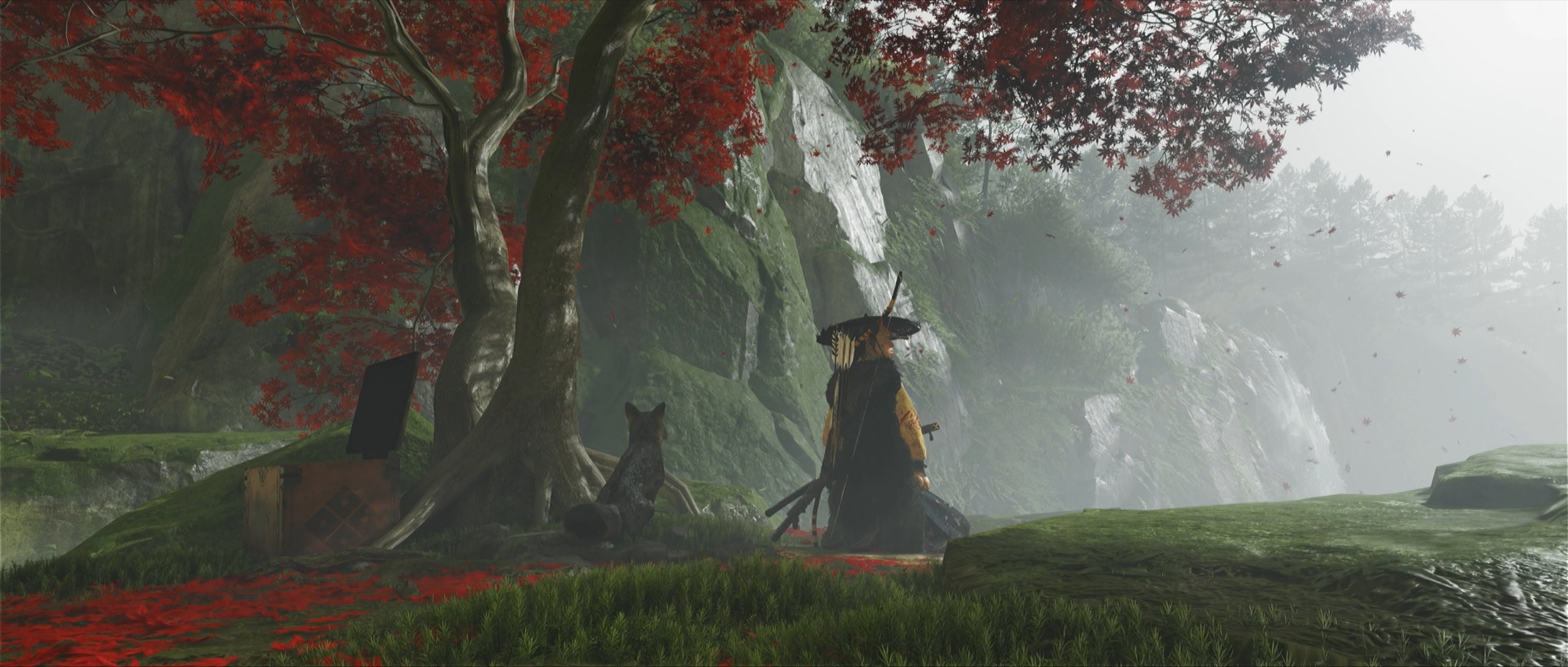 At the glade, there’s a chest beneath a red tree. Open it to find a haiku written by Jin Sakai. After the cutscene, the camera will pan and zoom to some vines. Go behind them to find a secret entrance.