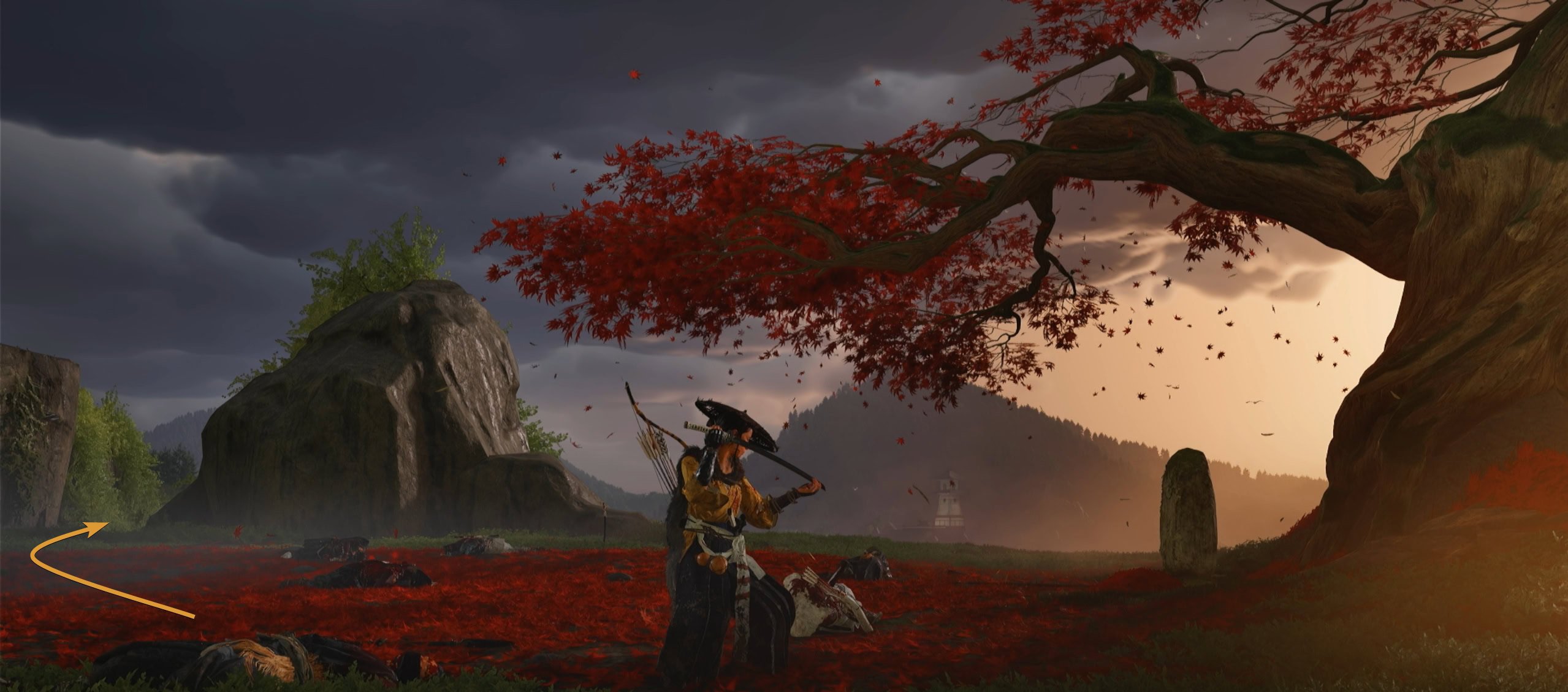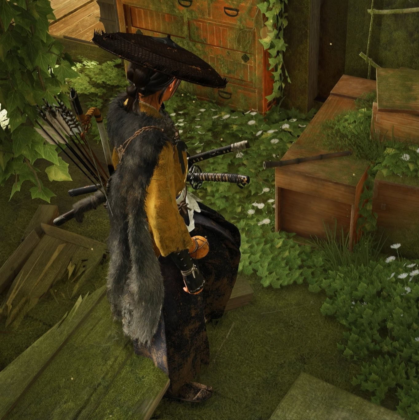 On top of some crates is Jin Sakai’s flute which you’ve likely heard throughout this mission. Jin Sakai’s theme will play throughout the mission with his melancholic theme song.
