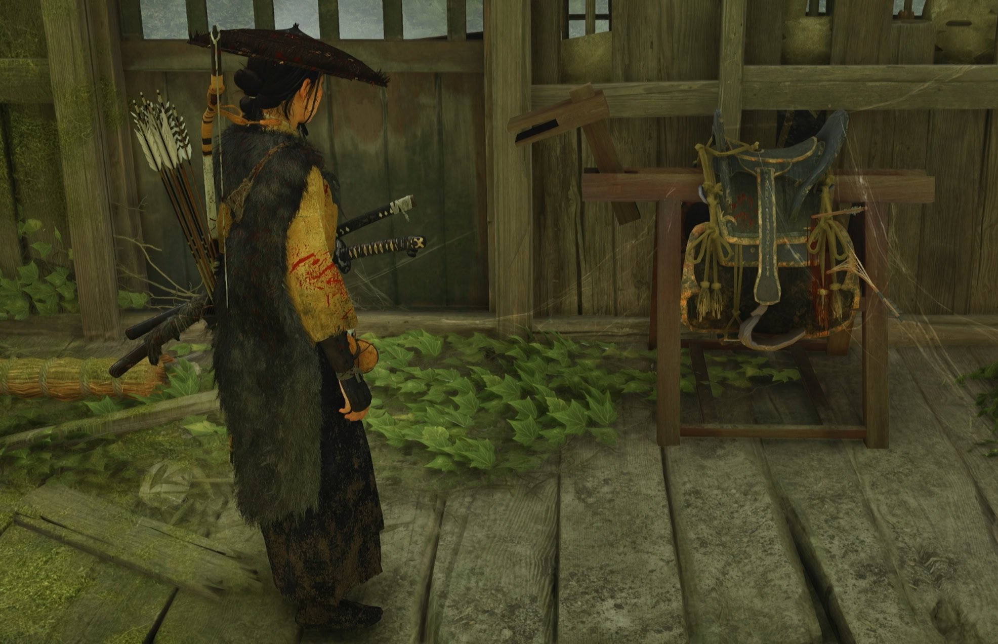 The last easter egg in the Shinobi Den is the saddle with the bloody handprint and blood stains. This is likely the saddle that Jin’s first horse died after helping him escape from Clan Shimura.