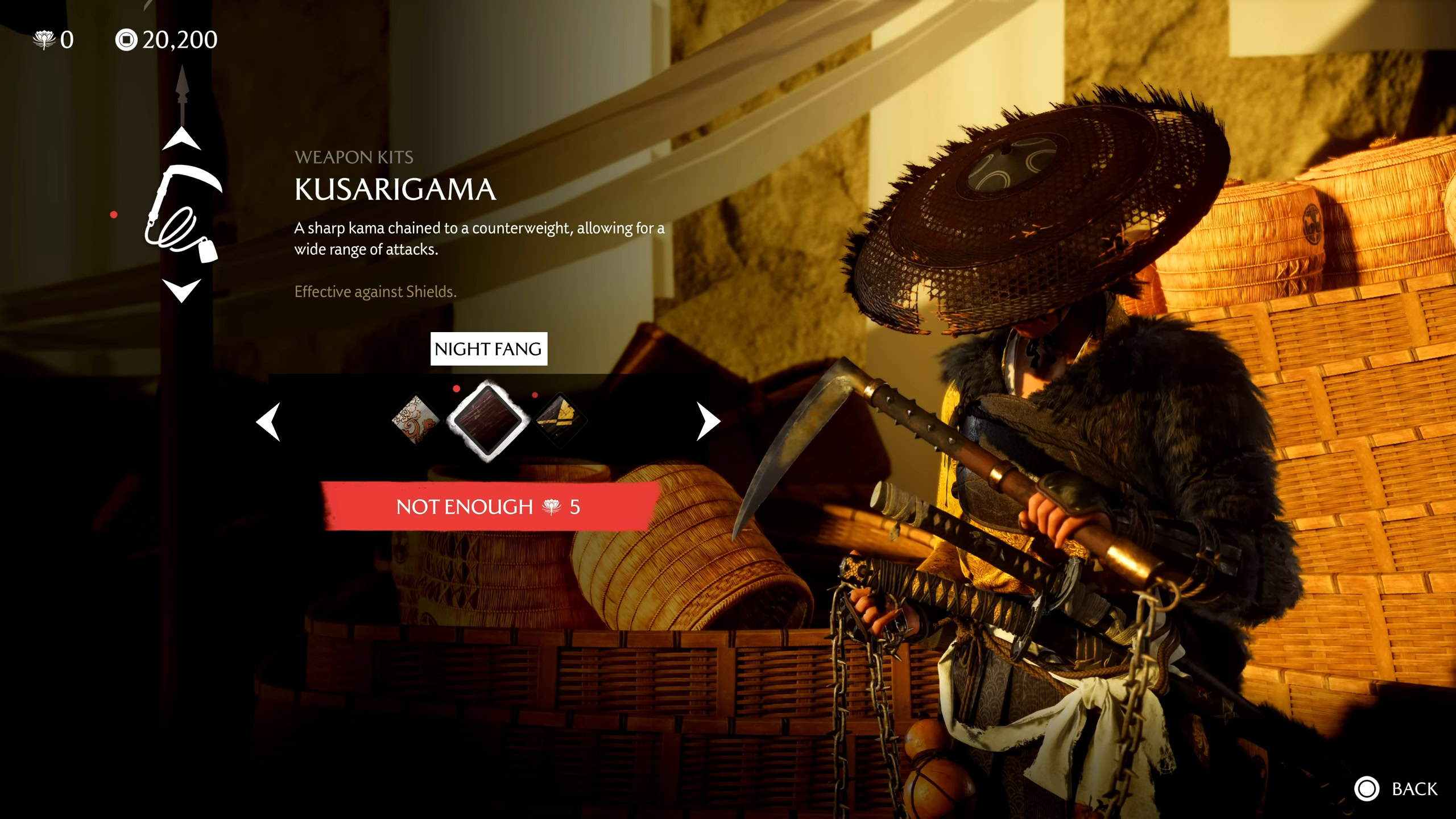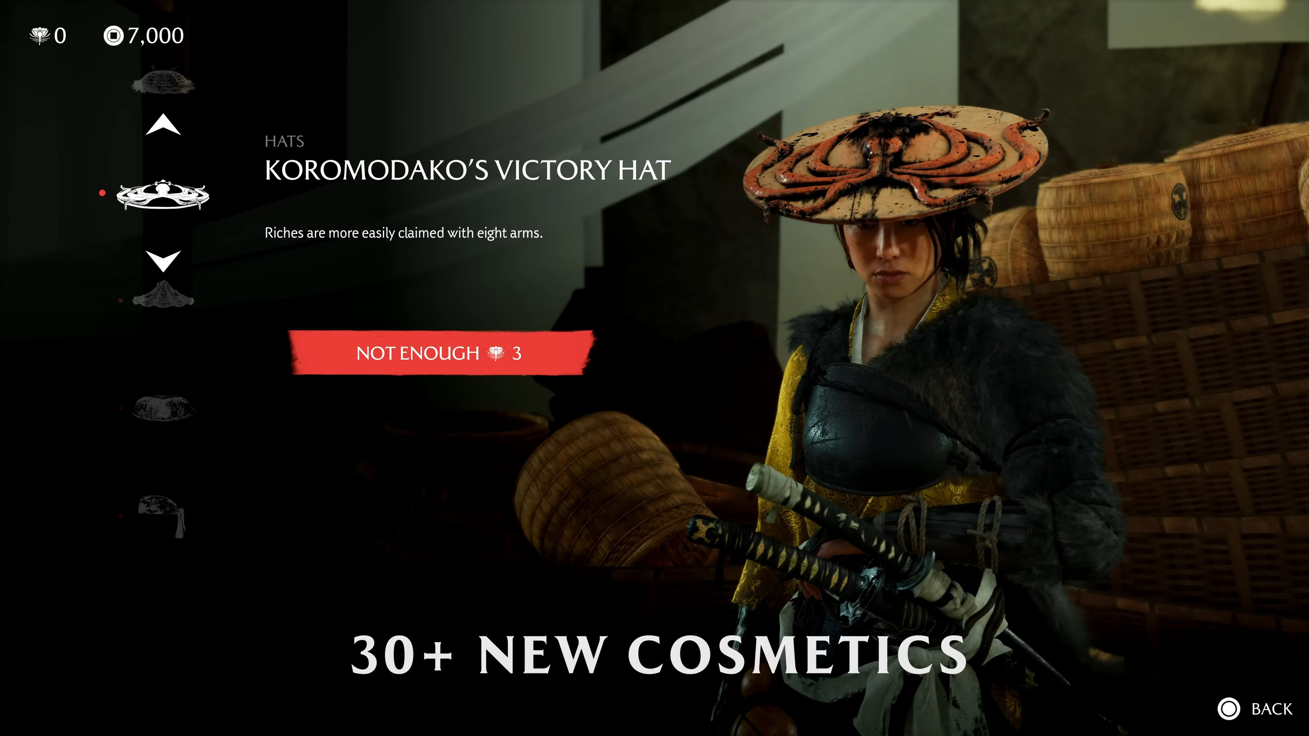 You debilitate yourself to get a chance to earn Ghost Flowers from defeated enemies. These can be used to purchased more goods from Masujiro, but will it be worth debilitating yourself for them?
