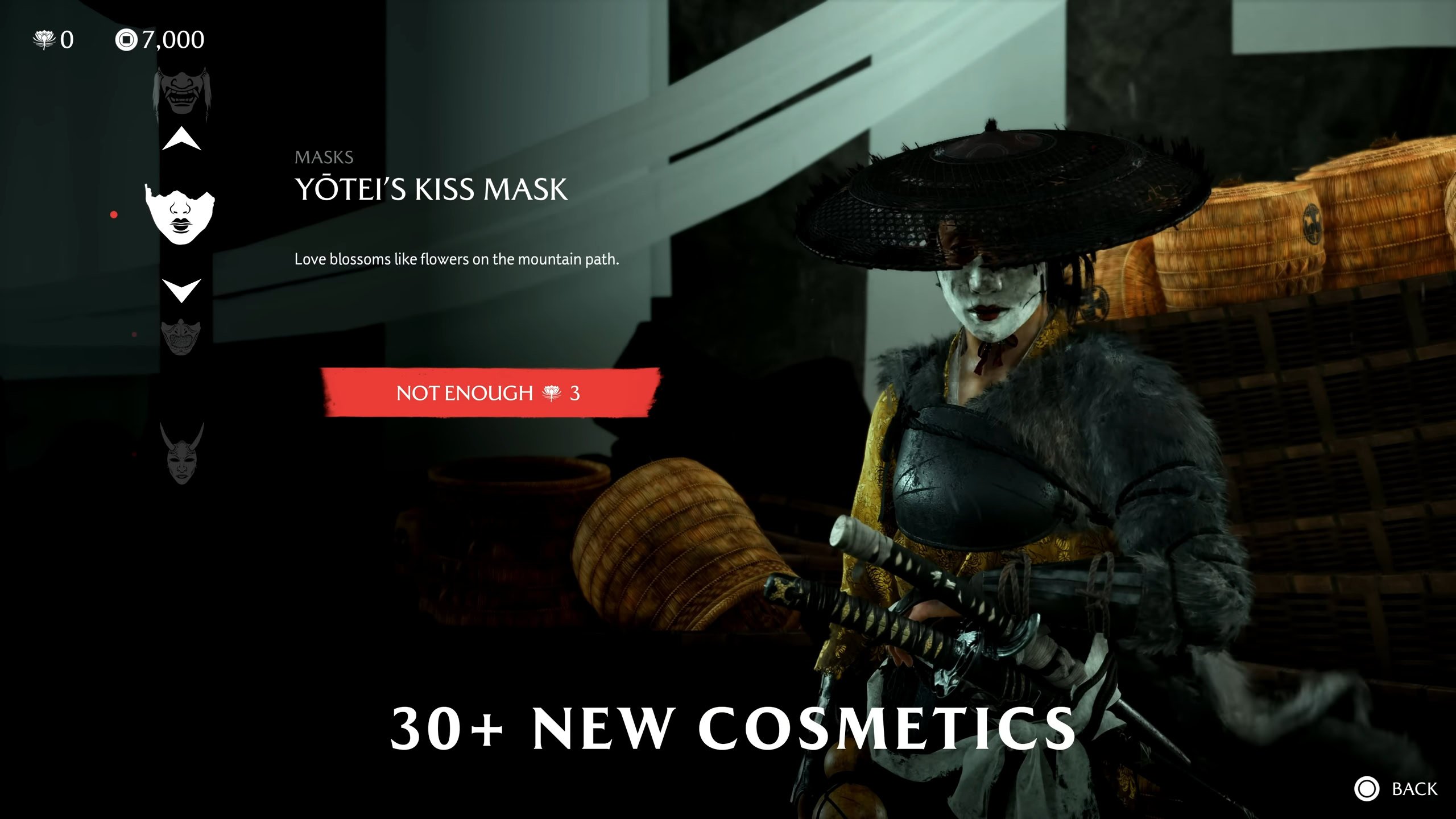 Over 30 new cosmetic items will be for sale if you have the Ghost Flowers for them. Only a handful of these cosmetics were displayed but these includes Weapon Kits, Hats, and Masks.