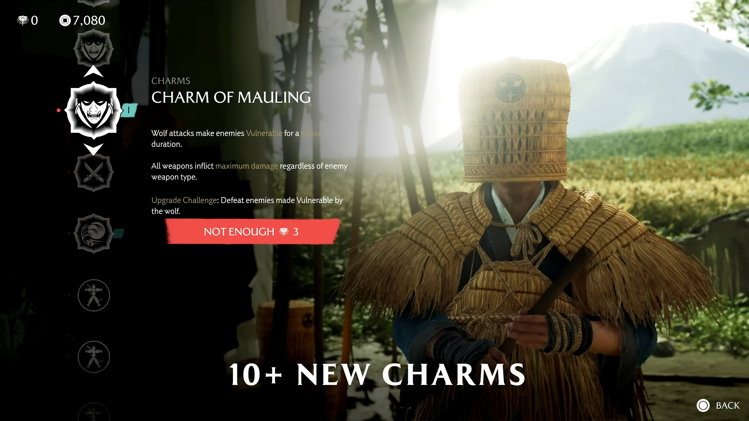 | Charm of the Onryo’s Wrath | After using Onryo’s Will, you have a minor chance to trigger Onryo’s Howl. Upgrade Challenge: Revive yourself with Onryo’s Will. | |