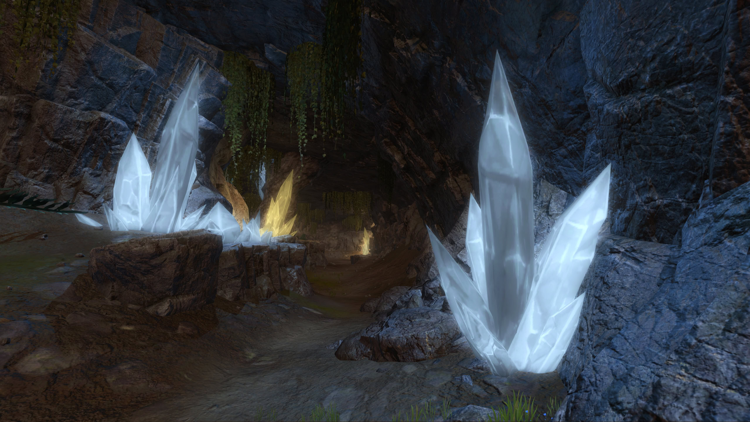 There is another cave right next to the Barn that houses the entrance to the official Landing Area. This one is brighter and has a bunch of crystals, so you can have a Dark Side and Light Side-themed areas if you like.